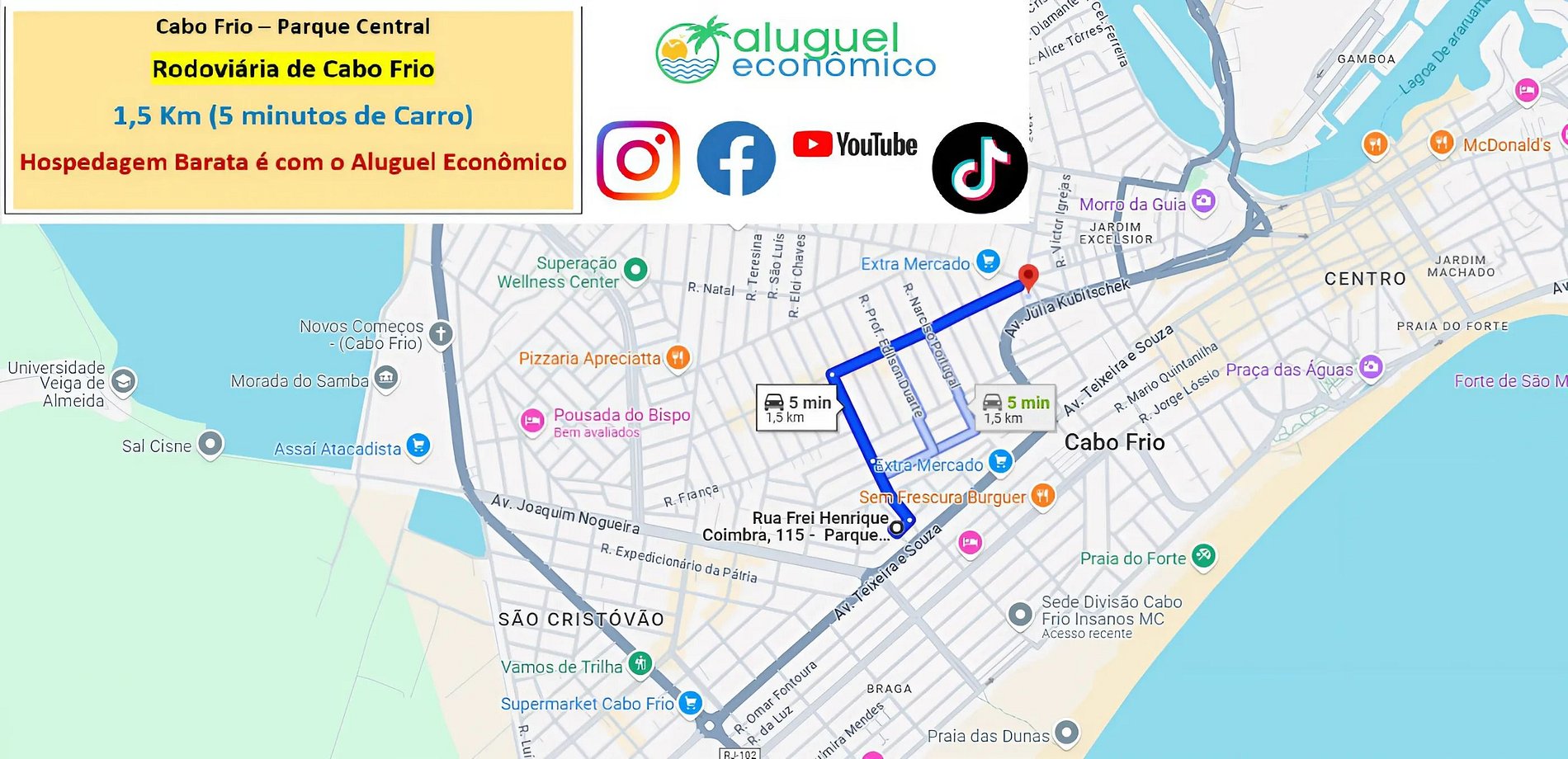 Cabo Frio Bus Station: 1.5 km (5 minutes by car);