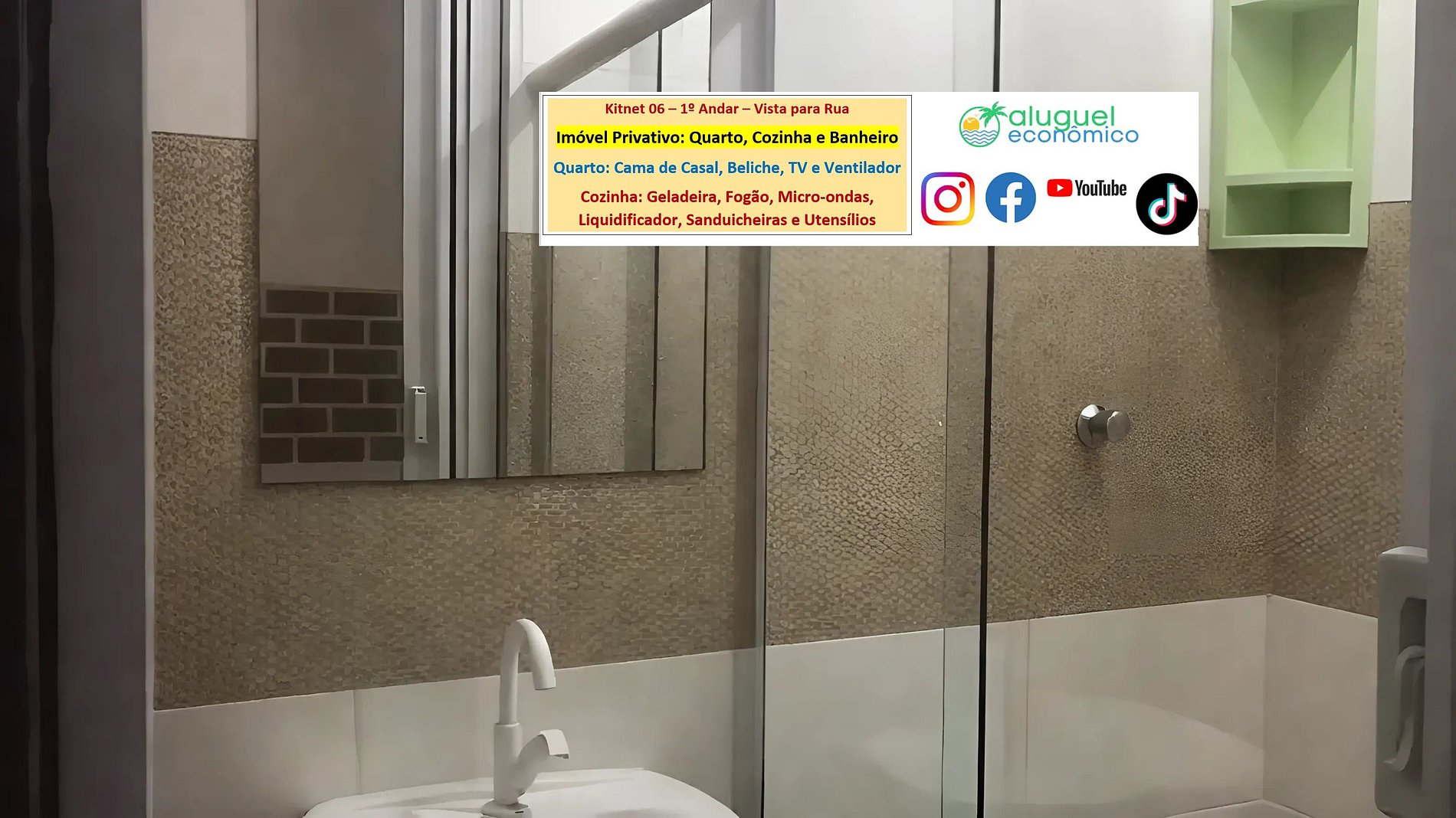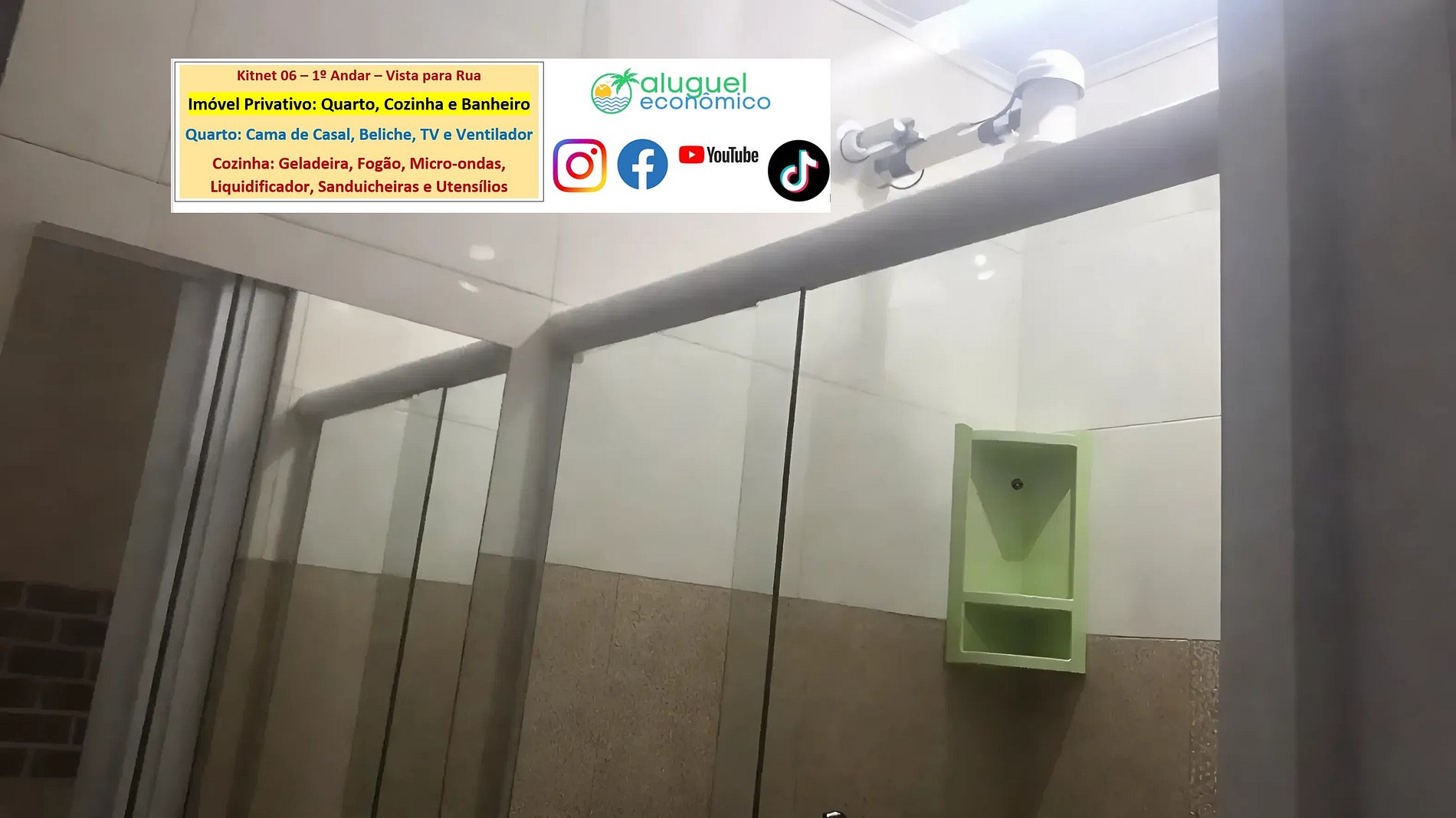 Private kitnet with bedroom, kitchen and bathroom. In the bedroom there is a double bed, bunk bed, TV and fan. Kitchen with refrigerator, stove, microwave, sandwich maker, blender, kitchen utensils. Bathroom with shower and electric shower. There is Wi-Fi. The building is behind the police station, making it a safe place to leave your vehicle on the street for free. The property is on the first floor, having to climb stairs. Window overlooking the street. Layette not included.