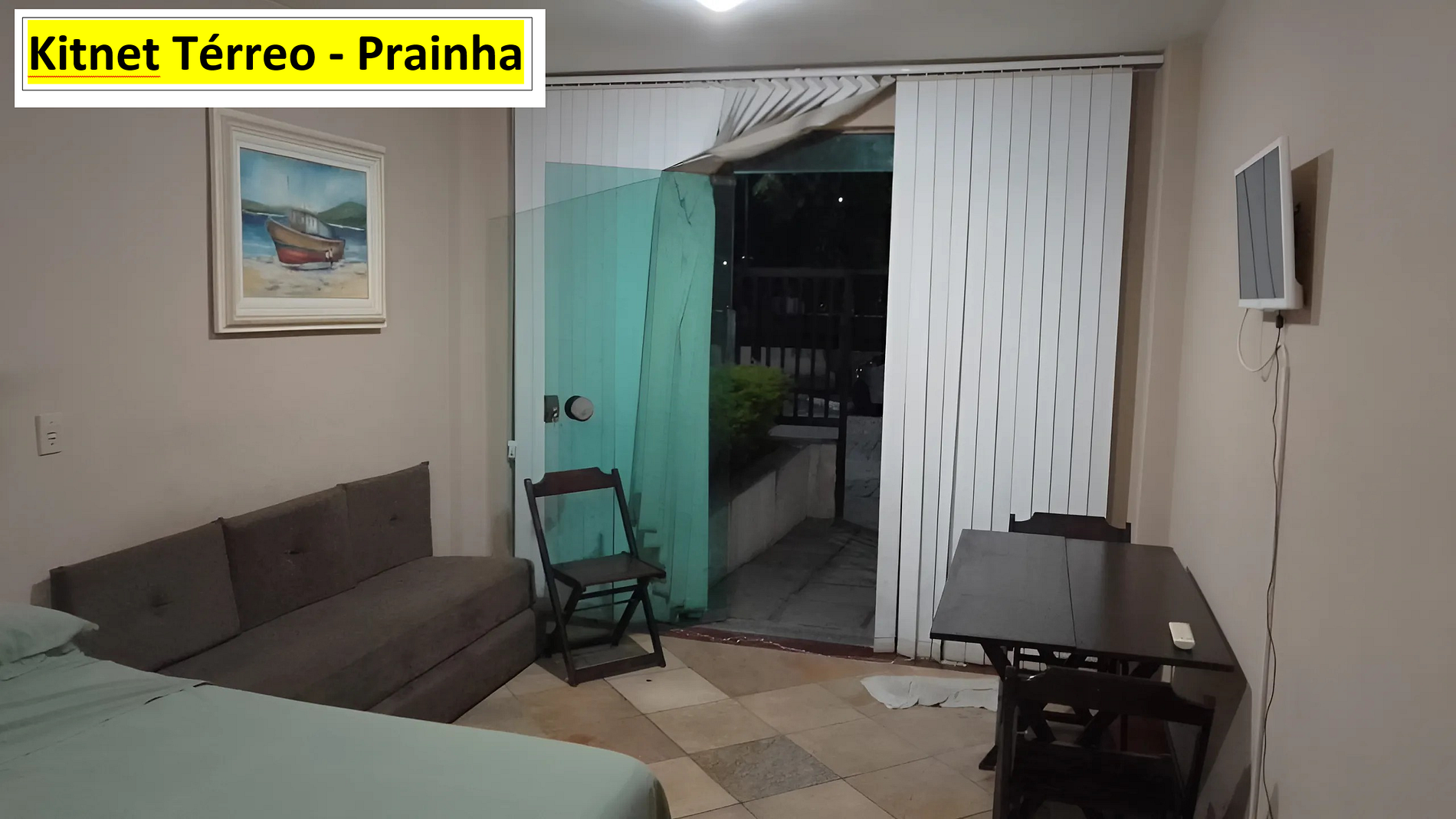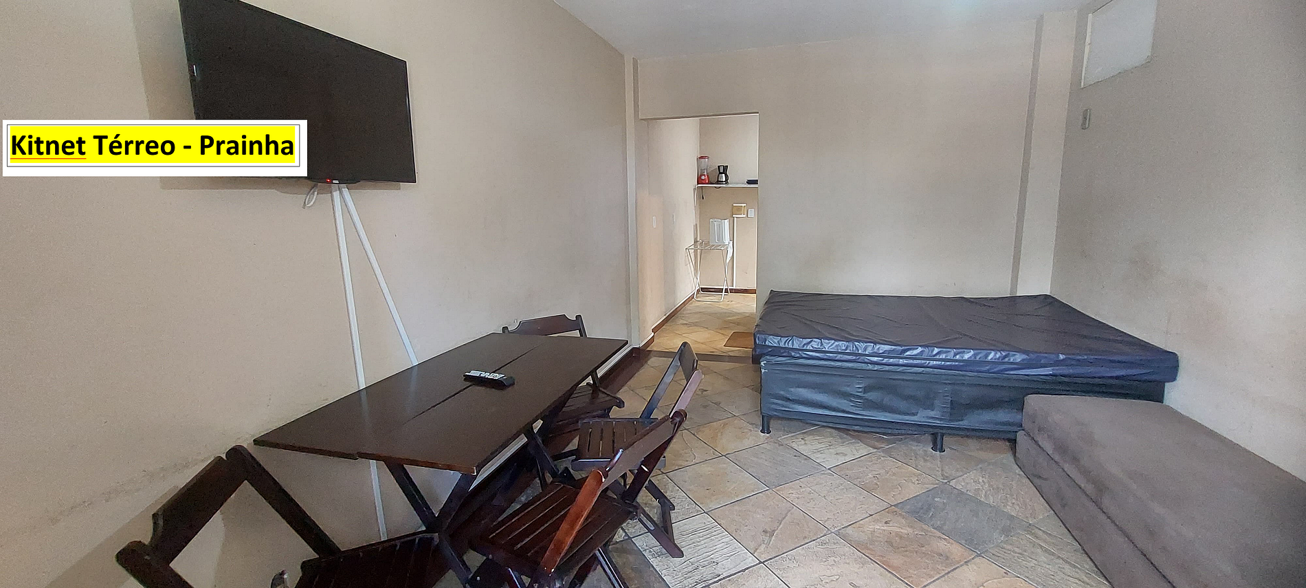 O imóvel comporta até 4 pessoas. Fica no térreo e a 3 minutos andando para praia. A Kitnet tem quarto, cozinha e banheiro. No quarto há TV, ventilador, cama de casal e dois sofás camas de solteiro. A cozinha é equipada com geladeira, forno micro-ondas, boca de fogão elétrico e utensílios de cozinha. Há ventilador e TV no quarto. Roupa de cama, banho e produtos de higiene pessoal não estão inclusos no valor da hospedagem. Nós alugamos estes itens a parte. Wi-Fi disponível. Não tem estacionamento.