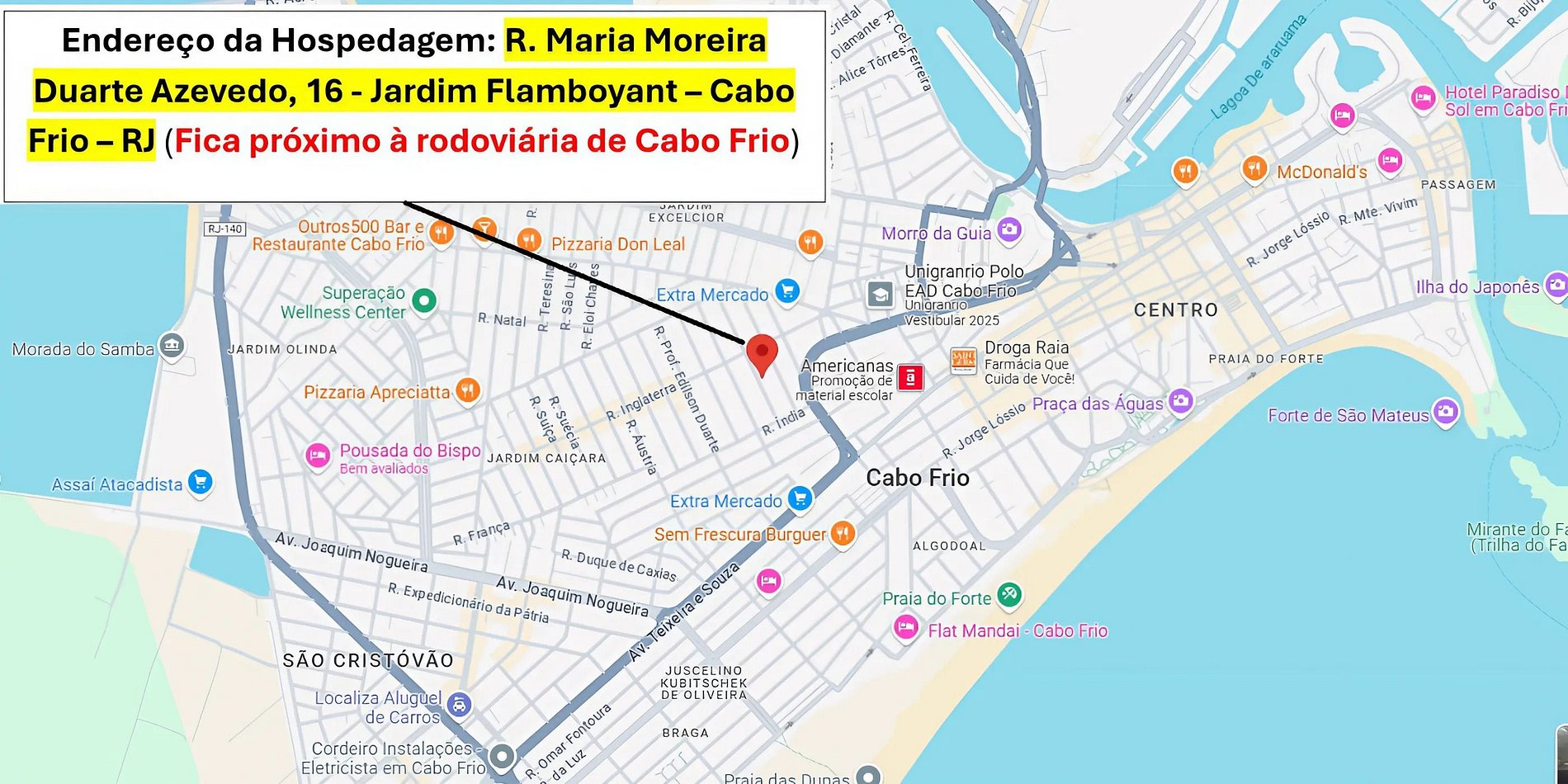 Location: R. Maria Moreira Duarte Azevedo, 16 - Jardim Flamboyant – Cabo Frio – RJ (It is close to the Cabo Frio bus station)