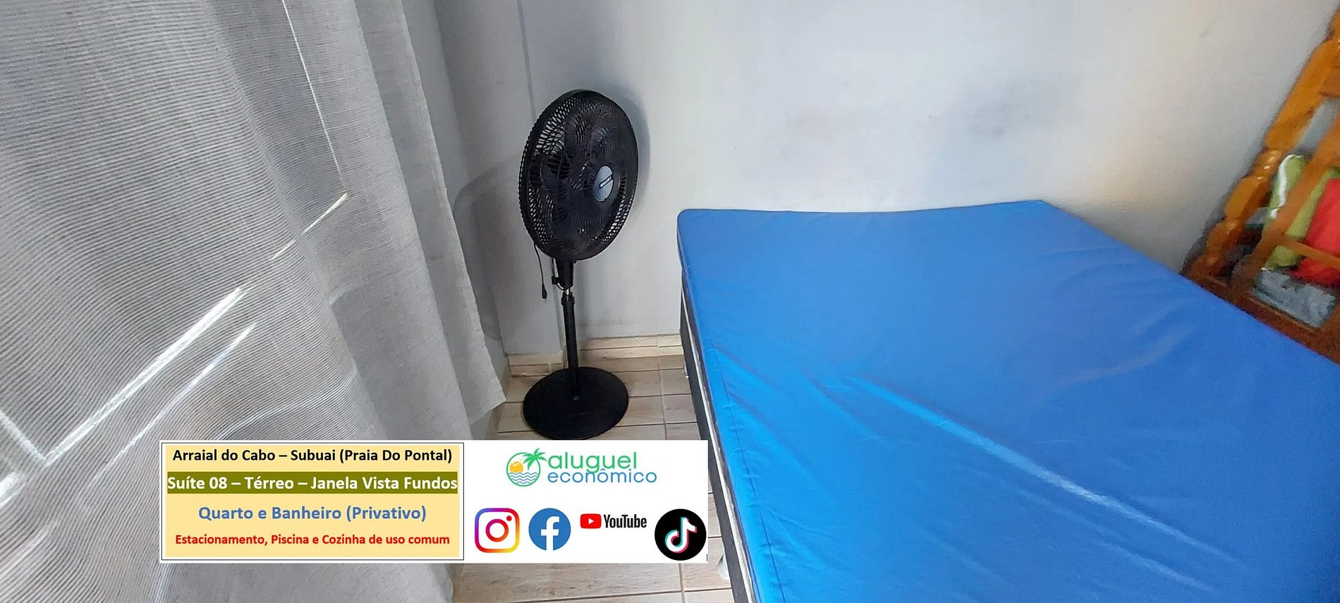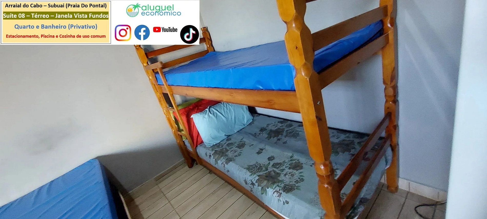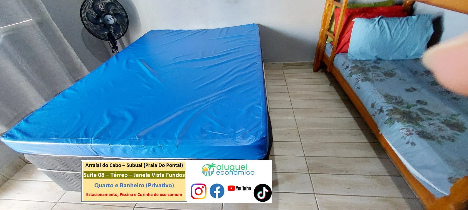 Accommodation Address: RJ-140 - Praia do Pontal, Arraial do Cabo - RJ (Subuai Village Arraial do Cabo) For more information about this property, please access the following link: https://www.alugueleconomico.com.br/pt/ Follow the contact details for more information about hosting: Margarete: 21 96754-7506 (Key delivery) Mara: 21 98107-1377 Carlos Eduardo: 21 98099-1377 Our email is as follows: atendimento@alugueleconomico.com.br Follow us on our social networks: Facebook page: https://www.facebook.com/alugueleconomicooficial Our Facebook group (Aluguel Economico): https://www.facebook.com/groups/184418835538966 Our Instagram page: https://www.instagram.com/alugueleconomico_pessoa/ Personal profile on Facebook: https://www.facebook.com/carloseduardobarros.leite.77 TikTok page: https://www.tiktok.com/@alugueleconomico_oficial