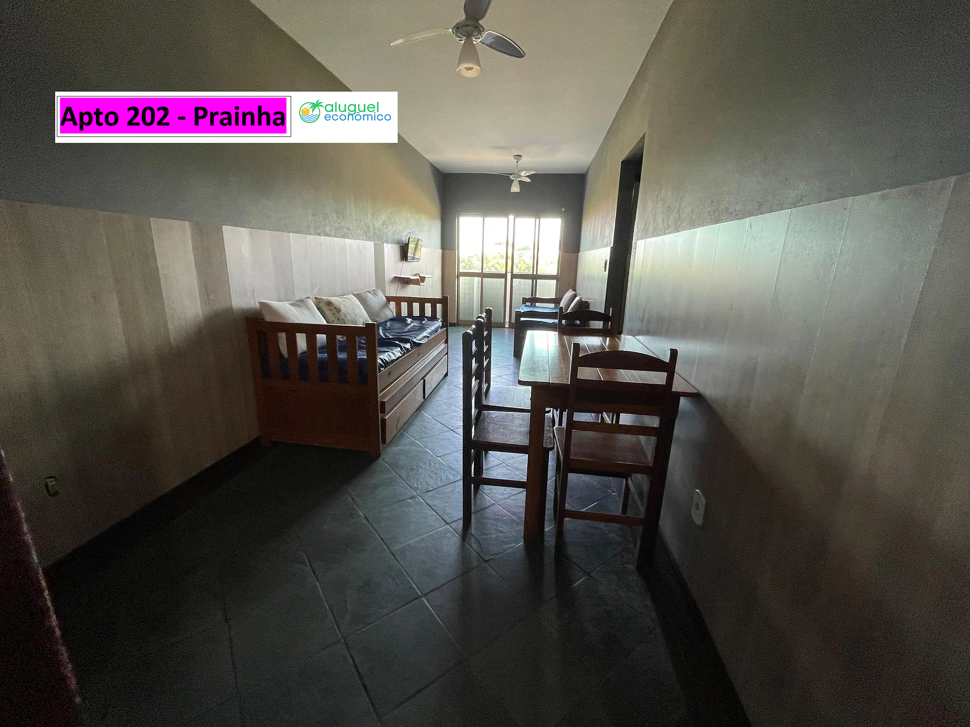 O apartamento fica no segundo andar localizado a 300 metros da Prainha. O imóvel é composto de dois quartos, sala, cozinha e banheiro. Ocupação para até 10 pessoas. A cozinha é equipada com geladeira, forno microondas, fogão, utensílios de cozinha e louça (panelas, pratos, copos, xícaras). Há ventiladores na sala e nos quartos. Não será disponibilizada roupa de cama, mesa e banho, nem produtos de higiene pessoal. Há televisão no apartamento com os canais básicos da TV aberta. Não há Internet disponível no apartamento. Há estacionamento no prédio para uma vaga. Não é permitido animais.