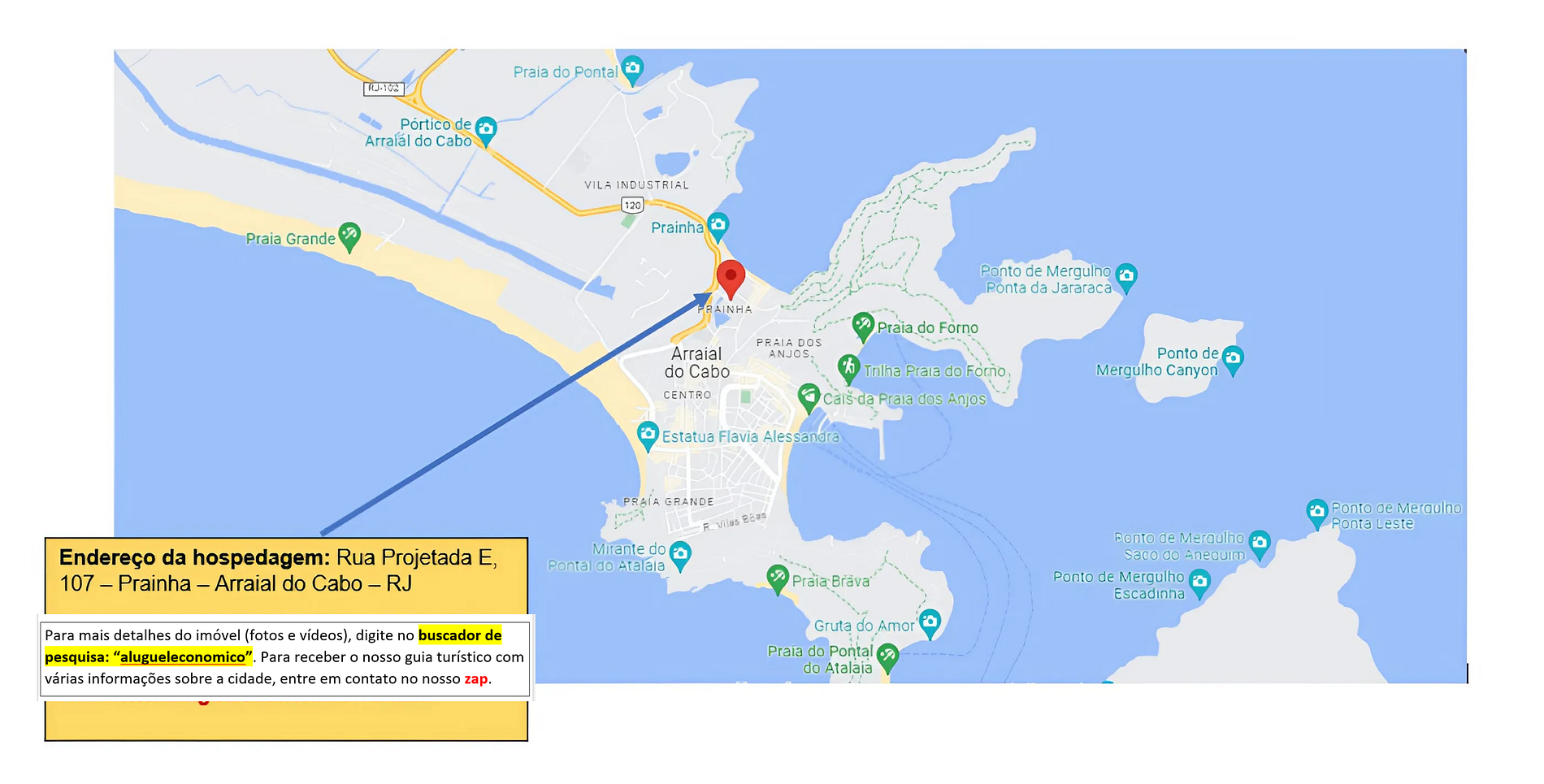 Endereço da hospedagem: Rua Projetada E, número 107 - Prainha, Arraial do Cabo – RJ (Ponto de referência: em frente ao Parque Municipal)
