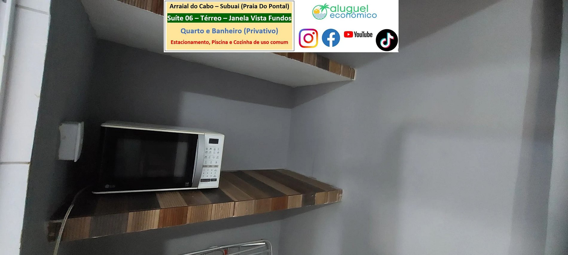 Accommodation Address: RJ-140 - Praia do Pontal, Arraial do Cabo - RJ (Subuai Village Arraial do Cabo) For more information about this property, please access the following link: https://www.alugueleconomico.com.br/pt/ Follow the contact details for more information about hosting: Margarete: 21 96754-7506 (Key delivery) Mara: 21 98107-1377 Carlos Eduardo: 21 98099-1377 Our email is as follows: atendimento@alugueleconomico.com.br Follow us on our social networks: Facebook page: https://www.facebook.com/alugueleconomicooficial Our Facebook group (Aluguel Economico): https://www.facebook.com/groups/184418835538966 Our Instagram page: https://www.instagram.com/alugueleconomico_pessoa/ Personal profile on Facebook: https://www.facebook.com/carloseduardobarros.leite.77 TikTok page: https://www.tiktok.com/@alugueleconomico_oficial