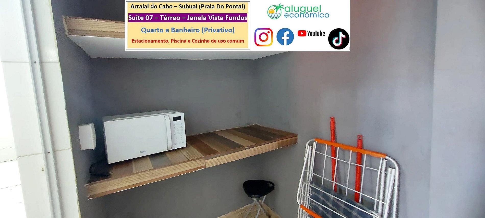 Accommodation Address: RJ-140 - Praia do Pontal, Arraial do Cabo - RJ (Subuai Village Arraial do Cabo) For more information about this property, please access the following link: https://www.alugueleconomico.com.br/pt/ Follow the contact details for more information about hosting: Margarete: 21 96754-7506 (Key delivery) Mara: 21 98107-1377 Carlos Eduardo: 21 98099-1377 Our email is as follows: atendimento@alugueleconomico.com.br Follow us on our social networks: Facebook page: https://www.facebook.com/alugueleconomicooficial Our Facebook group (Aluguel Economico): https://www.facebook.com/groups/184418835538966 Our Instagram page: https://www.instagram.com/alugueleconomico_pessoa/ Personal profile on Facebook: https://www.facebook.com/carloseduardobarros.leite.77 TikTok page: https://www.tiktok.com/@alugueleconomico_oficial