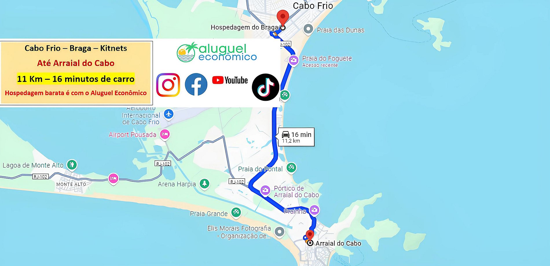 Arraial do Cabo: 11 km (15 minutes by car)