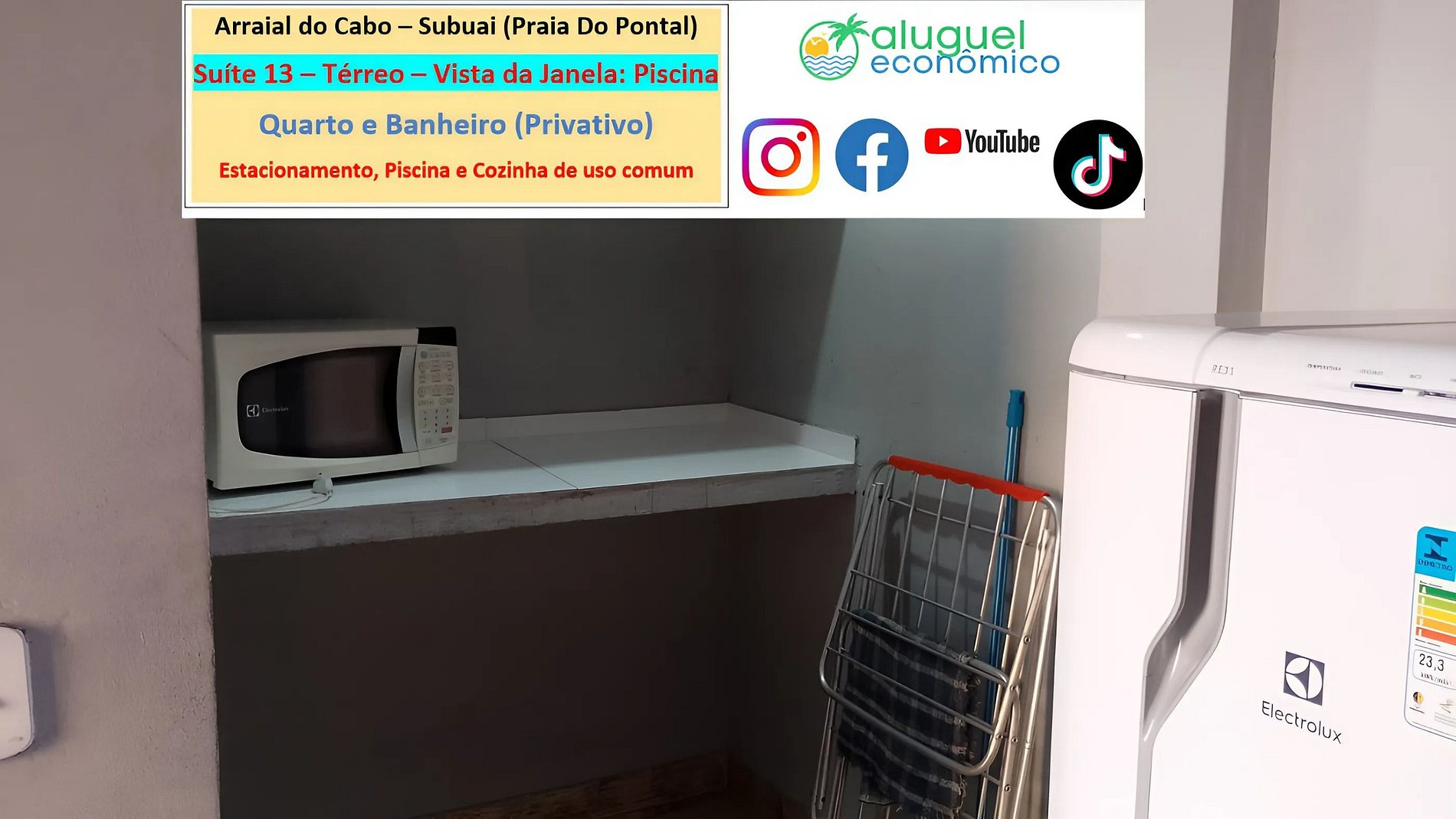 Accommodation Address: RJ-140 - Praia do Pontal, Arraial do Cabo - RJ (Subuai Village Arraial do Cabo) For more information about this property, please access the following link: https://www.alugueleconomico.com.br/pt/ Follow the contact details for more information about hosting: Margarete: 21 96754-7506 (Key delivery) Mara: 21 98107-1377 Carlos Eduardo: 21 98099-1377 Our email is as follows: atendimento@alugueleconomico.com.br Follow us on our social networks: Facebook page: https://www.facebook.com/alugueleconomicooficial Our Facebook group (Aluguel Economico): https://www.facebook.com/groups/184418835538966 Our Instagram page: https://www.instagram.com/alugueleconomico_pessoa/ Personal profile on Facebook: https://www.facebook.com/carloseduardobarros.leite.77 TikTok page: https://www.tiktok.com/@alugueleconomico_oficial