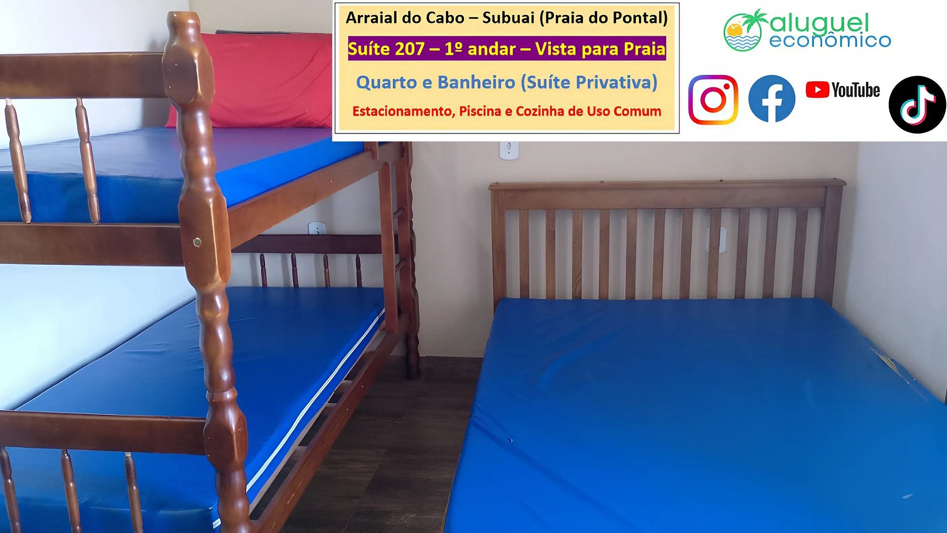 Accommodation Address: RJ-140 - Praia do Pontal, Arraial do Cabo - RJ (Subuai Village Arraial do Cabo) For more information about this property, please access the following link: https://www.alugueleconomico.com.br/pt/ Follow the contact details for more information about hosting: Margarete: 21 96754-7506 (Key delivery) Mara: 21 98107-1377 Carlos Eduardo: 21 98099-1377 Our email is as follows: atendimento@alugueleconomico.com.br Follow us on our social networks: Facebook page: https://www.facebook.com/alugueleconomicooficial Our Facebook group (Aluguel Economico): https://www.facebook.com/groups/184418835538966 Our Instagram page: https://www.instagram.com/alugueleconomico_pessoa/ Personal profile on Facebook: https://www.facebook.com/carloseduardobarros.leite.77 TikTok page: https://www.tiktok.com/@alugueleconomico_oficial