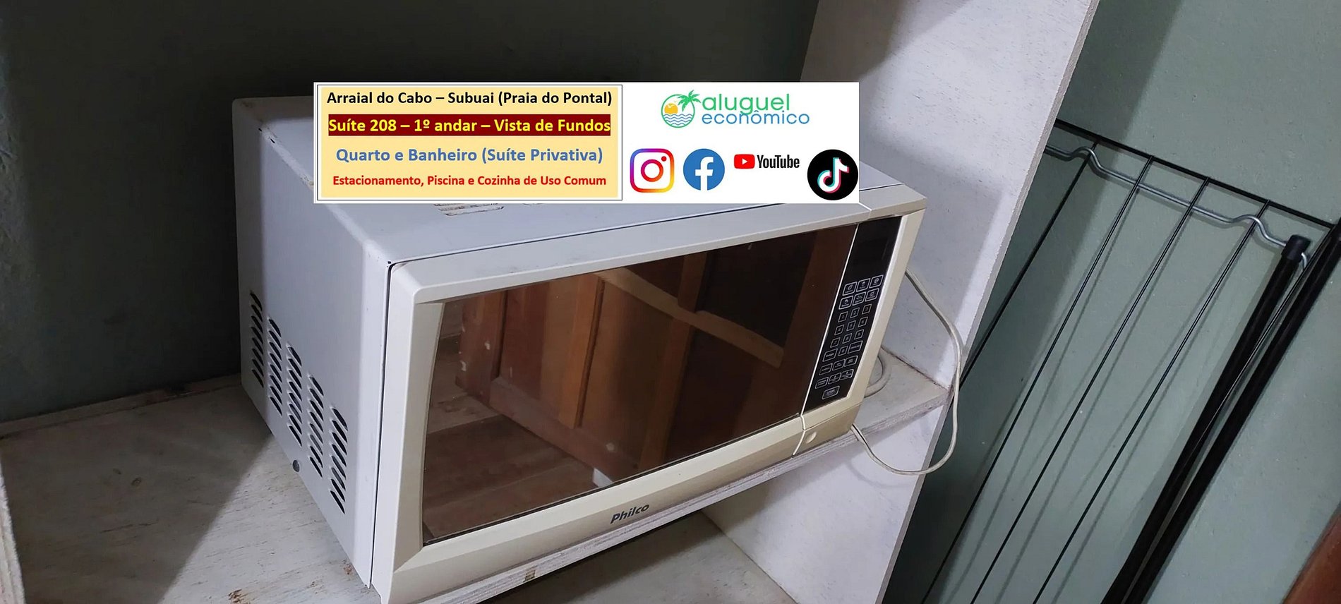 Accommodation Address: RJ-140 - Praia do Pontal, Arraial do Cabo - RJ (Subuai Village Arraial do Cabo) For more information about this property, please access the following link: https://www.alugueleconomico.com.br/pt/ Follow the contact details for more information about hosting: Margarete: 21 96754-7506 (Key delivery) Mara: 21 98107-1377 Carlos Eduardo: 21 98099-1377 Our email is as follows: atendimento@alugueleconomico.com.br Follow us on our social networks: Facebook page: https://www.facebook.com/alugueleconomicooficial Our Facebook group (Aluguel Economico): https://www.facebook.com/groups/184418835538966 Our Instagram page: https://www.instagram.com/alugueleconomico_pessoa/ Personal profile on Facebook: https://www.facebook.com/carloseduardobarros.leite.77 TikTok page: https://www.tiktok.com/@alugueleconomico_oficial