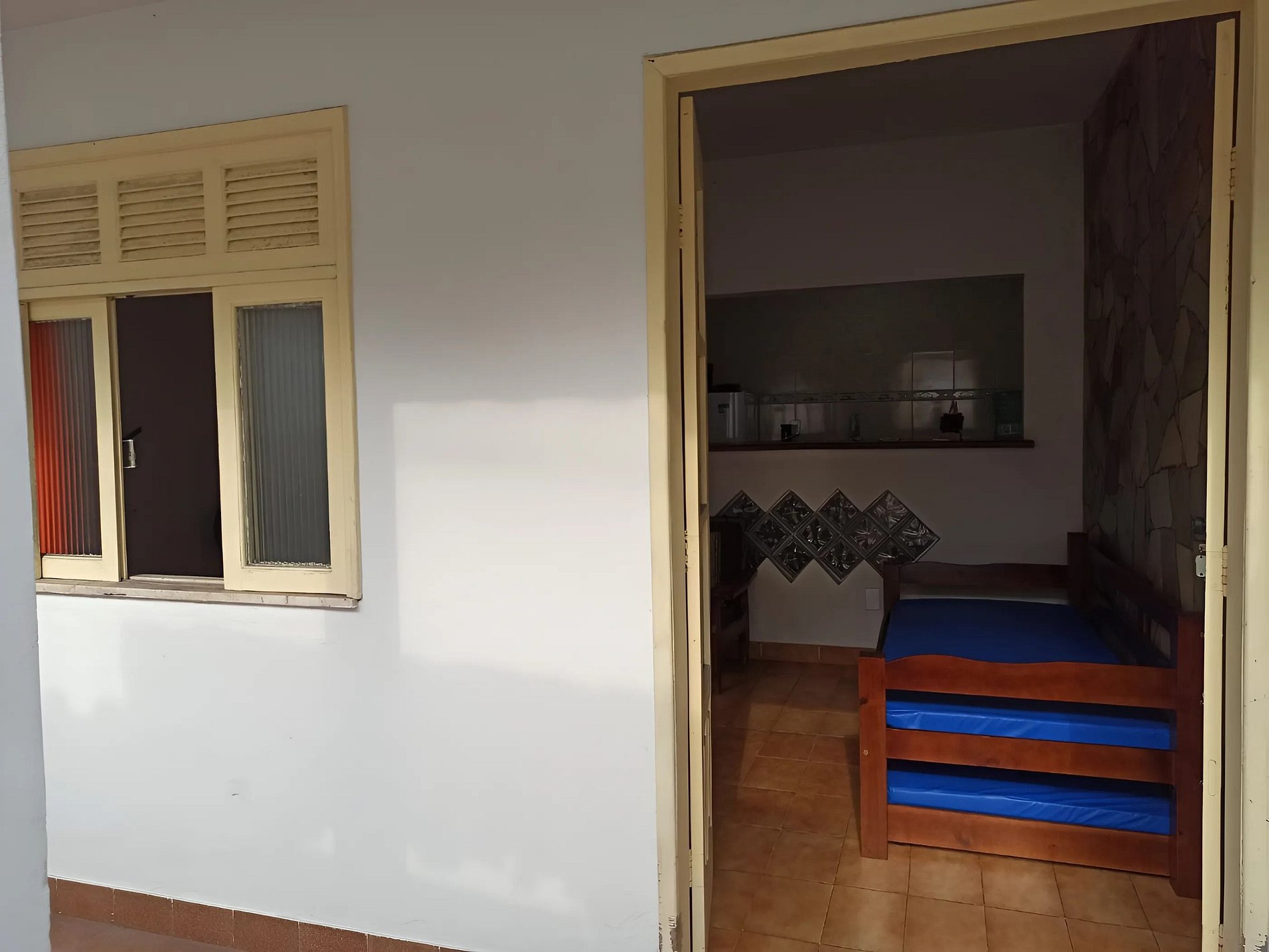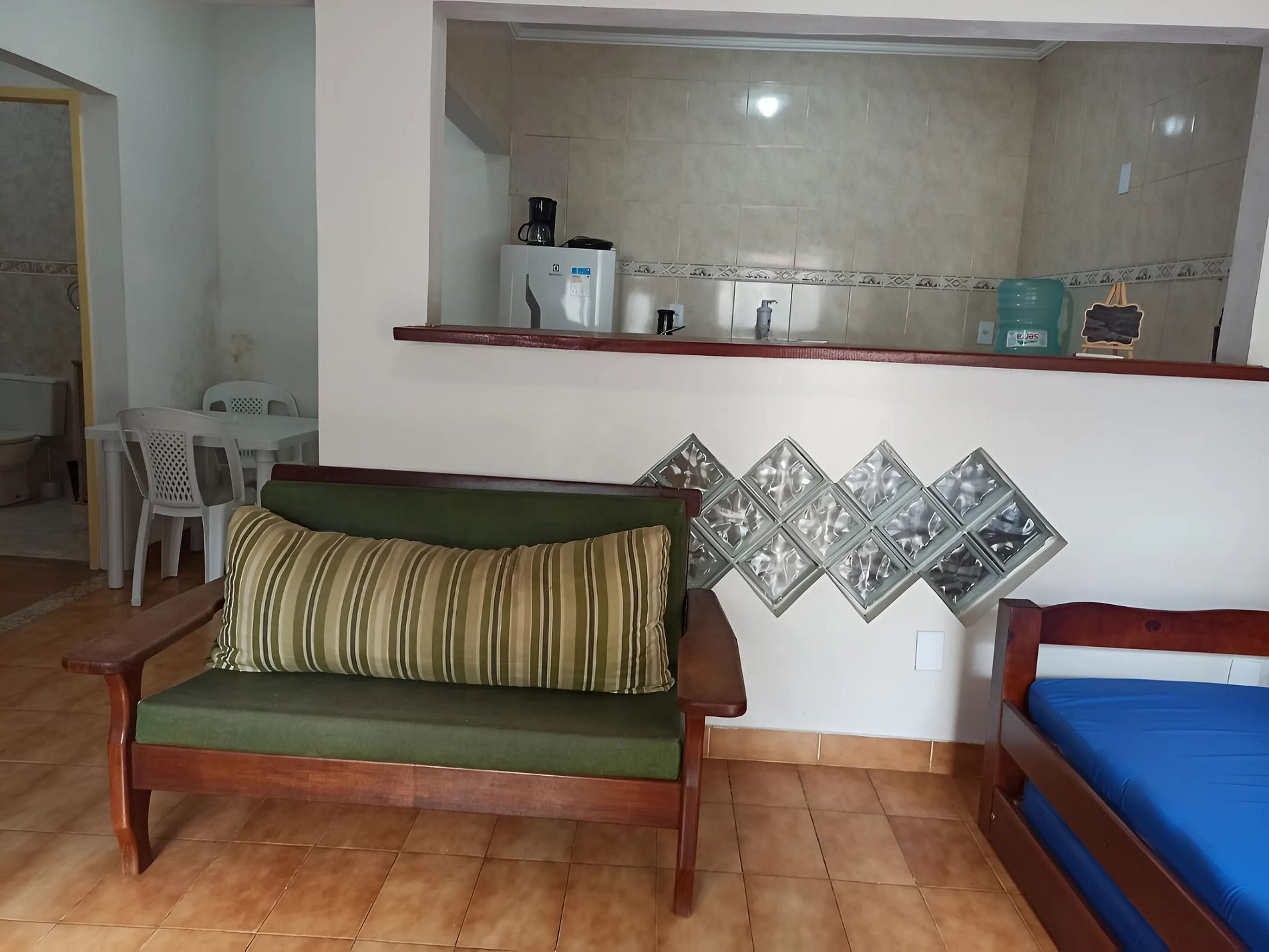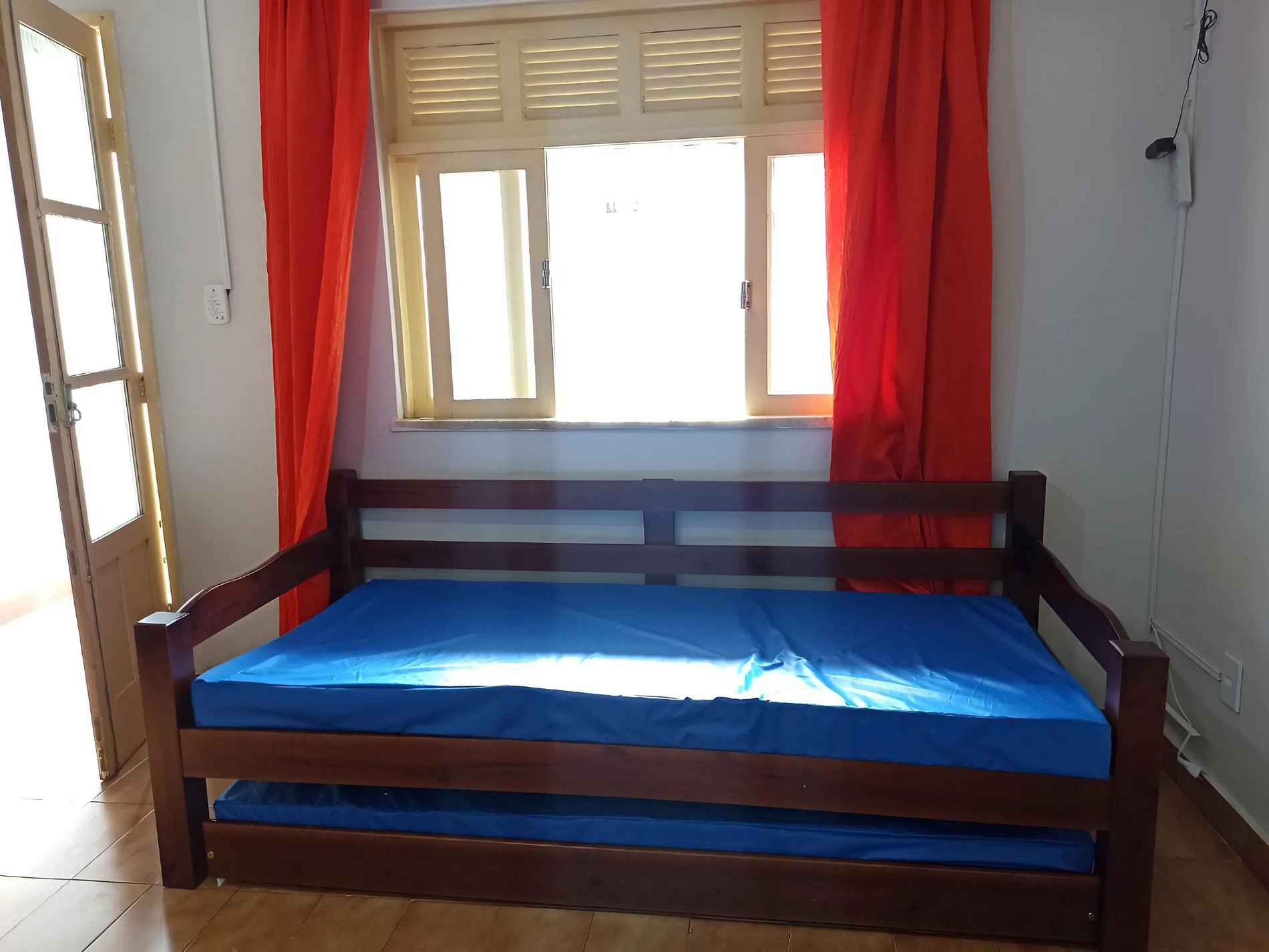 Casa com quarto, sala, cozinha e banheiro no Centro de Arraial do Cabo e a 400 metros da Praia Grande. No quarto há cama de casal, bicama, ventilador e ar condicionado. Na sala há duas bicamas, um beliche, mesas, cadeiras, ventilador e tv. Na cozinha há fogão, geladeira, forno micro-ondas, liquidificador, sanduicheira e utensílios de cozinha. Há Wi-Fi. Não Há estacionamento. O local é bem tranquilo e seguro. Comporta até 10 pessoas. Identificação pessoal é exigida do responsável da reserva.
