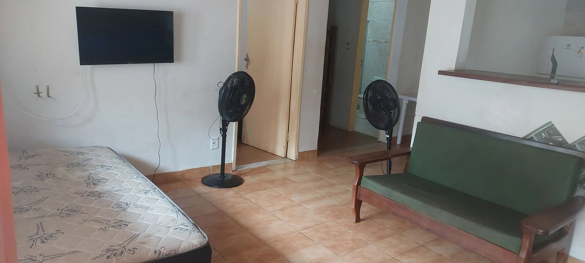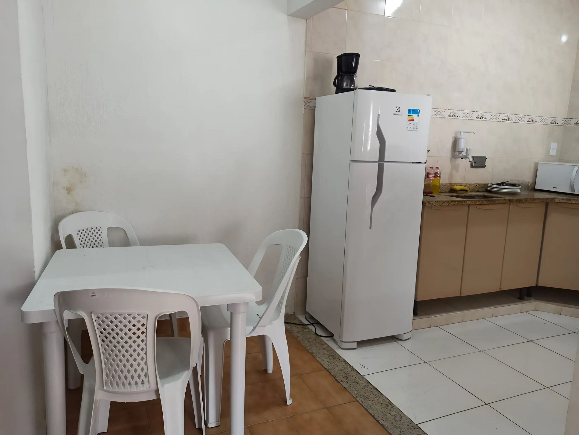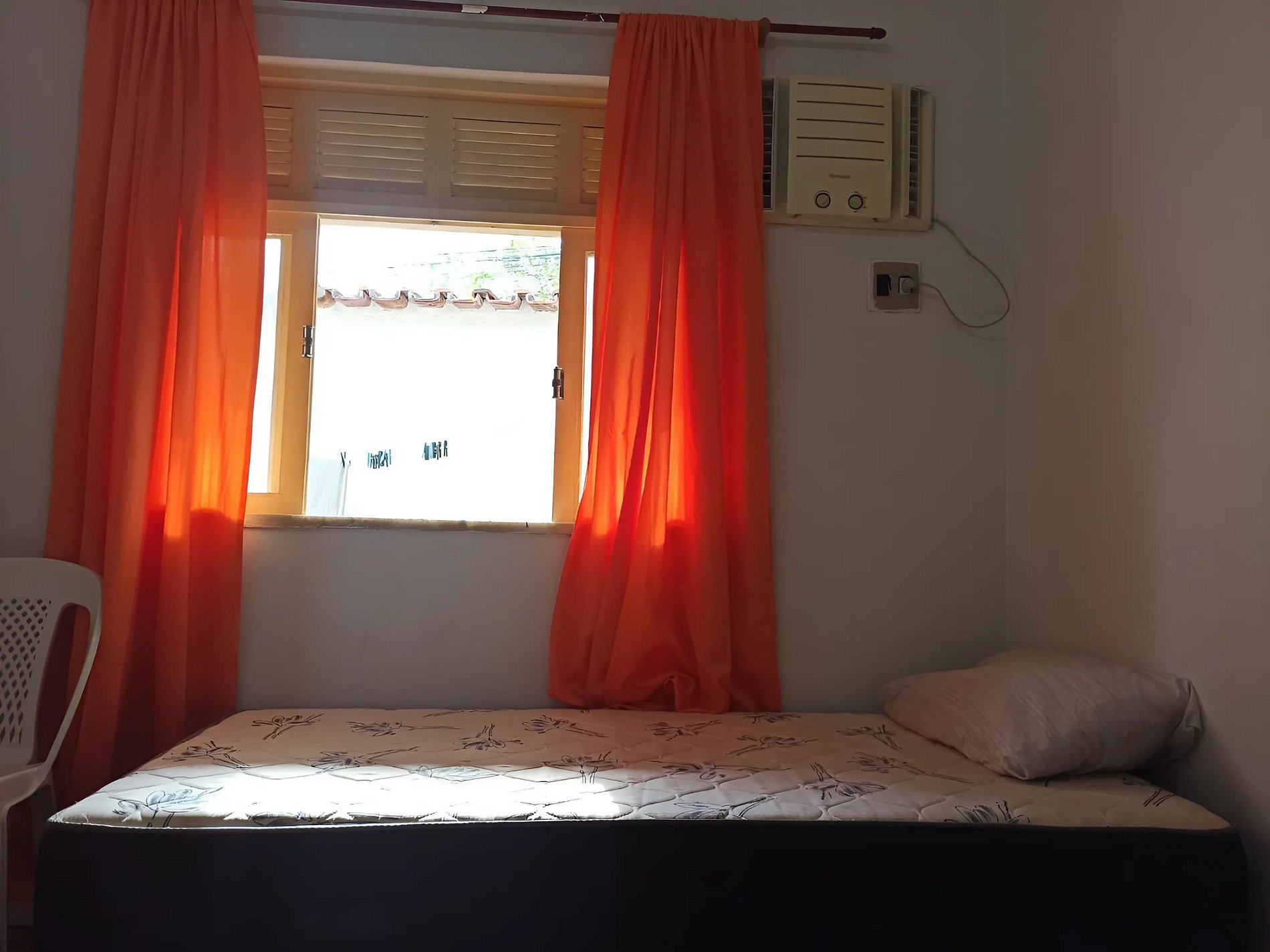 Casa com quarto, sala, cozinha e banheiro no Centro de Arraial do Cabo e a 400 metros da Praia Grande. No quarto há cama de casal, bicama, ventilador e ar condicionado. Na sala há duas bicamas, um beliche, mesas, cadeiras, ventilador e tv. Na cozinha há fogão, geladeira, forno micro-ondas, liquidificador, sanduicheira e utensílios de cozinha. Há Wi-Fi. Não Há estacionamento. O local é bem tranquilo e seguro. Comporta até 10 pessoas. Identificação pessoal é exigida do responsável da reserva.