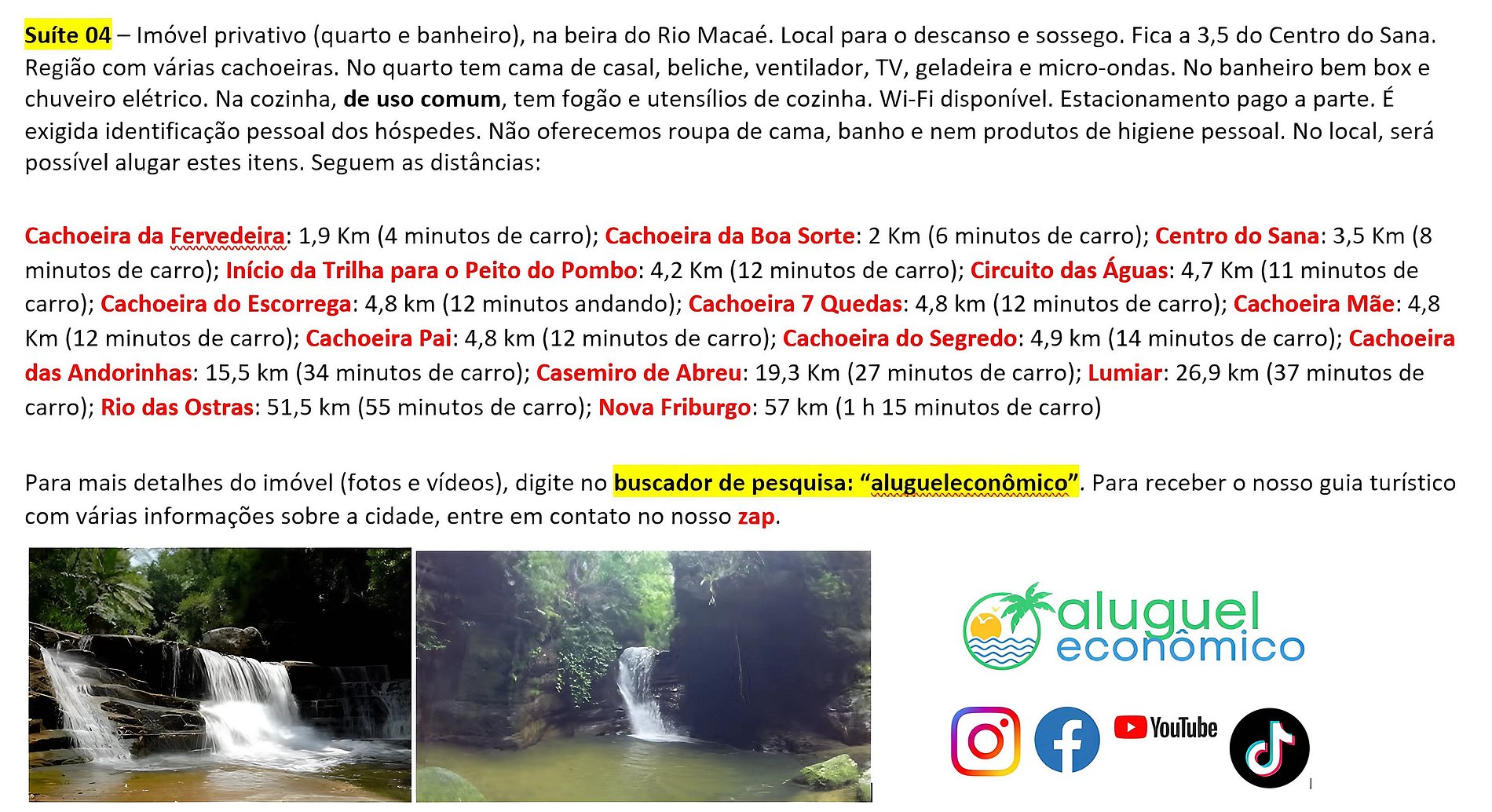Propiedad privada (dormitorio y baño), a orillas del río Macaé. Lugar para el descanso y la tranquilidad. Está a 3,5 del centro de Sana. Región con varias cascadas. La habitación cuenta con cama matrimonial, litera, ventilador, TV, refrigerador y microondas. En el baño hay un box y una ducha eléctrica. La cocina común tiene estufa y utensilios de cocina. Wi-Fi disponible. Aparcamiento pagado por separado. No proporcionamos ropa de cama, toallas ni productos de higiene personal.