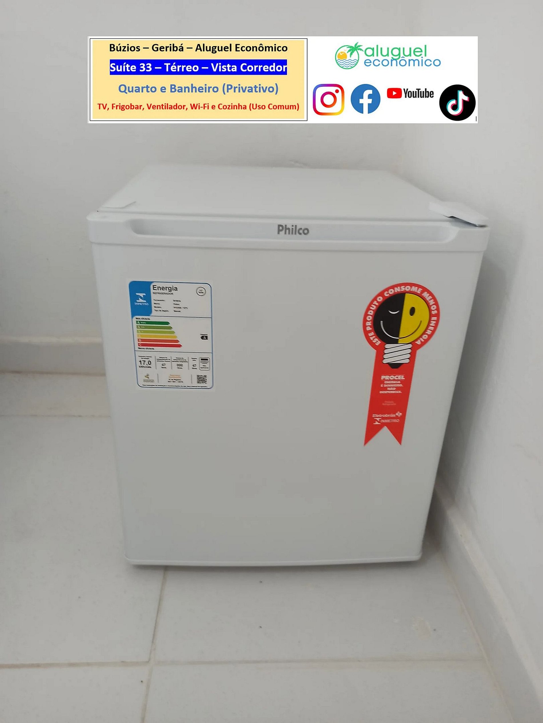 Propiedad privada (dormitorio y baño) en planta baja. Se encuentra a 600 metros de la playa de Geribá. Ventana con vista interna (estacionamiento). En el dormitorio hay una cama doble y dos sofás cama individuales, ventilador, TV, minibar. En el baño hay una cabina con ducha eléctrica. Hay una cocina, de uso común, con vitrocerámica, horno microondas, batidora, sandwichera, Airfryer, cafetera y utensilios de cocina. Wifi gratuito. Aparcamiento pagado por separado. Se requiere identificación