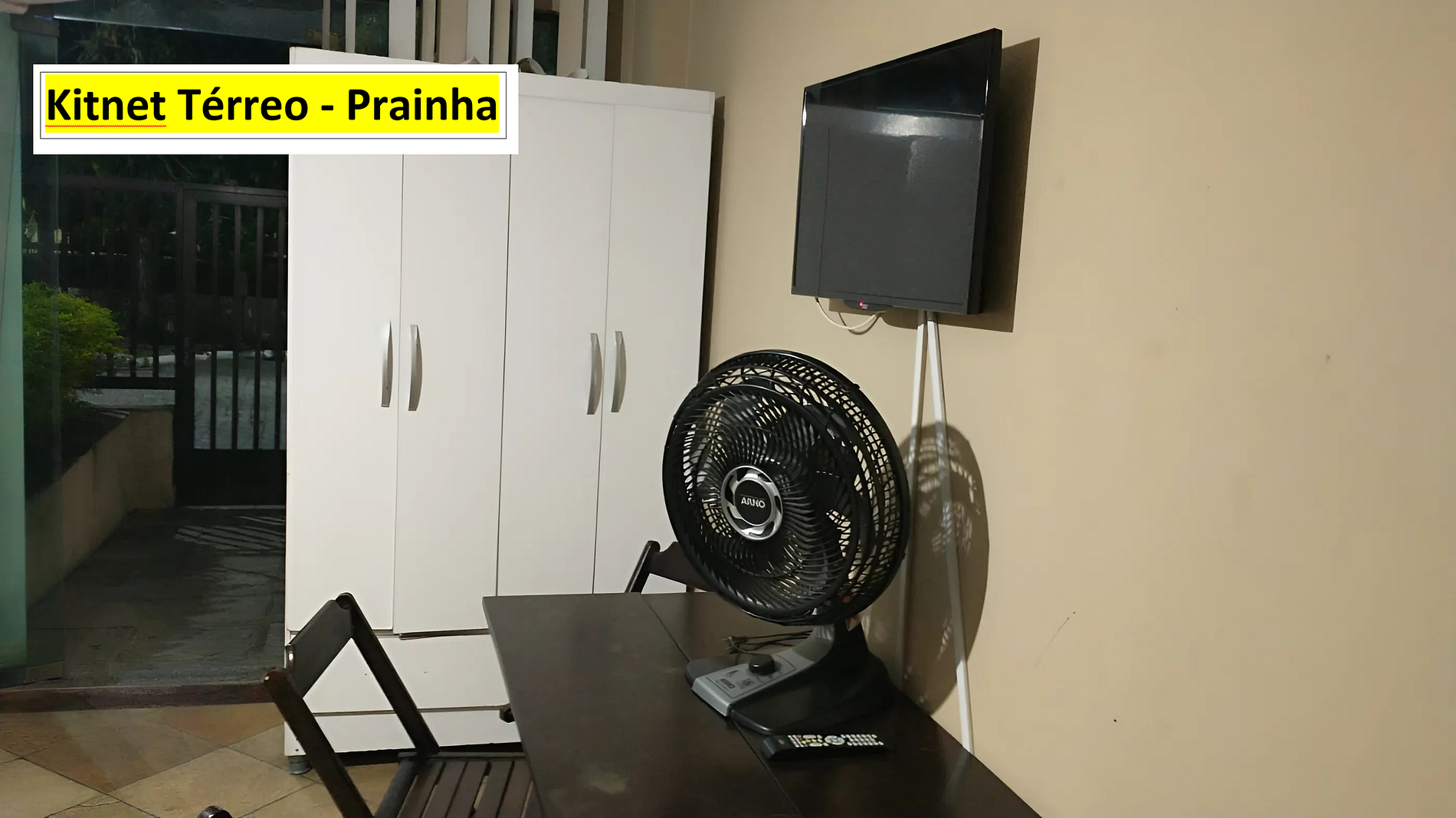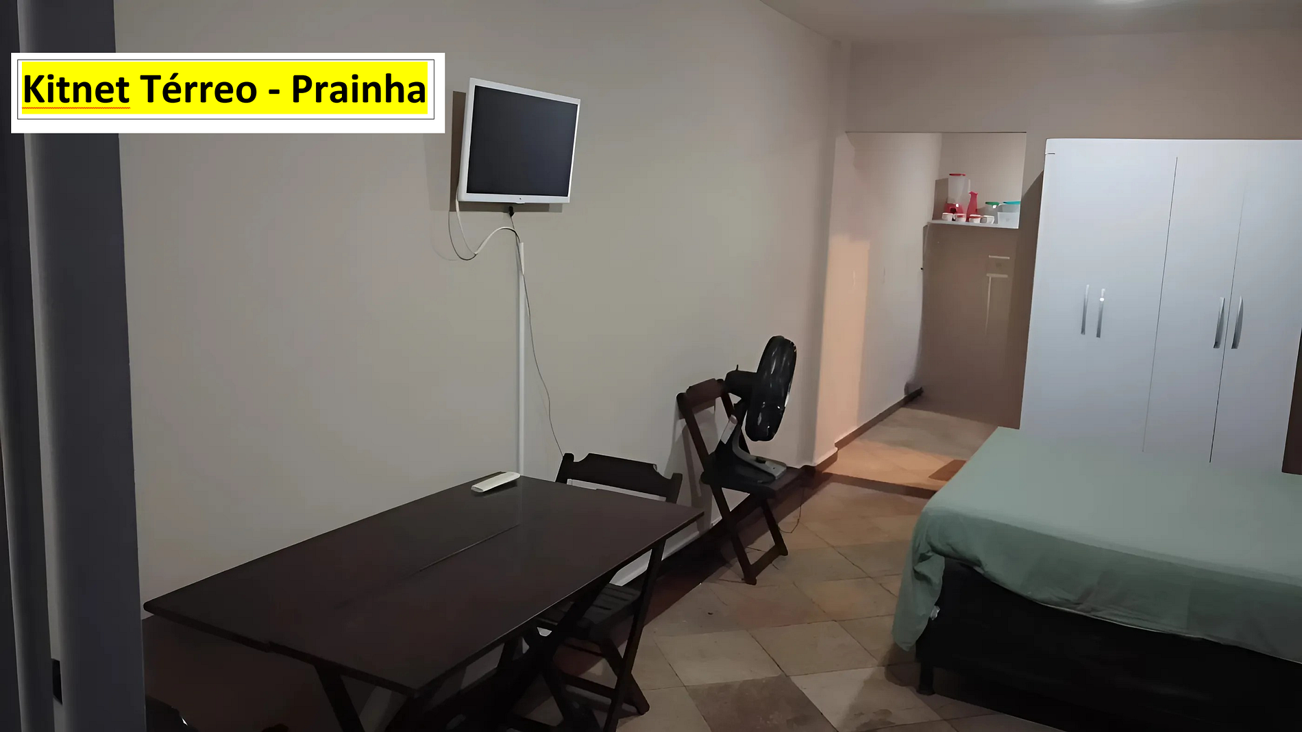 O imóvel comporta até 4 pessoas. Fica no térreo e a 3 minutos andando para praia. A Kitnet tem quarto, cozinha e banheiro. No quarto há TV, ventilador, cama de casal e dois sofás camas de solteiro. A cozinha é equipada com geladeira, forno micro-ondas, boca de fogão elétrico e utensílios de cozinha. Há ventilador e TV no quarto. Roupa de cama, banho e produtos de higiene pessoal não estão inclusos no valor da hospedagem. Nós alugamos estes itens a parte. Wi-Fi disponível. Não tem estacionamento.