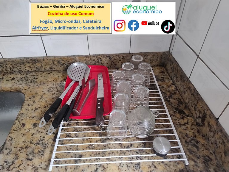 Propiedad privada (dormitorio y baño) en el 1er piso con escaleras necesarias. Se encuentra a 600 metros de la playa de Geribá. Ventana que da al pasillo. En el dormitorio hay una cama doble, 2 sofás cama individuales, armario, ventilador, TV, minibar. En el baño hay una cabina con ducha eléctrica. Hay una cocina, de uso común, con vitrocerámica, horno microondas, batidora, sandwichera, Airfryer, cafetera y utensilios de cocina. Wifi gratuito. Aparcamiento pagado por separado.