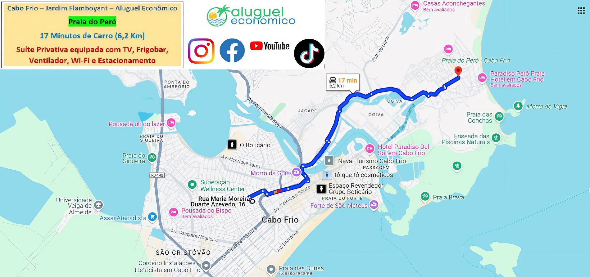 Ubicación: R. Maria Moreira Duarte Azevedo, 16 - Jardim Flamboyant – Cabo Frio – RJ (Está cerca de la estación de autobuses de Cabo Frio)