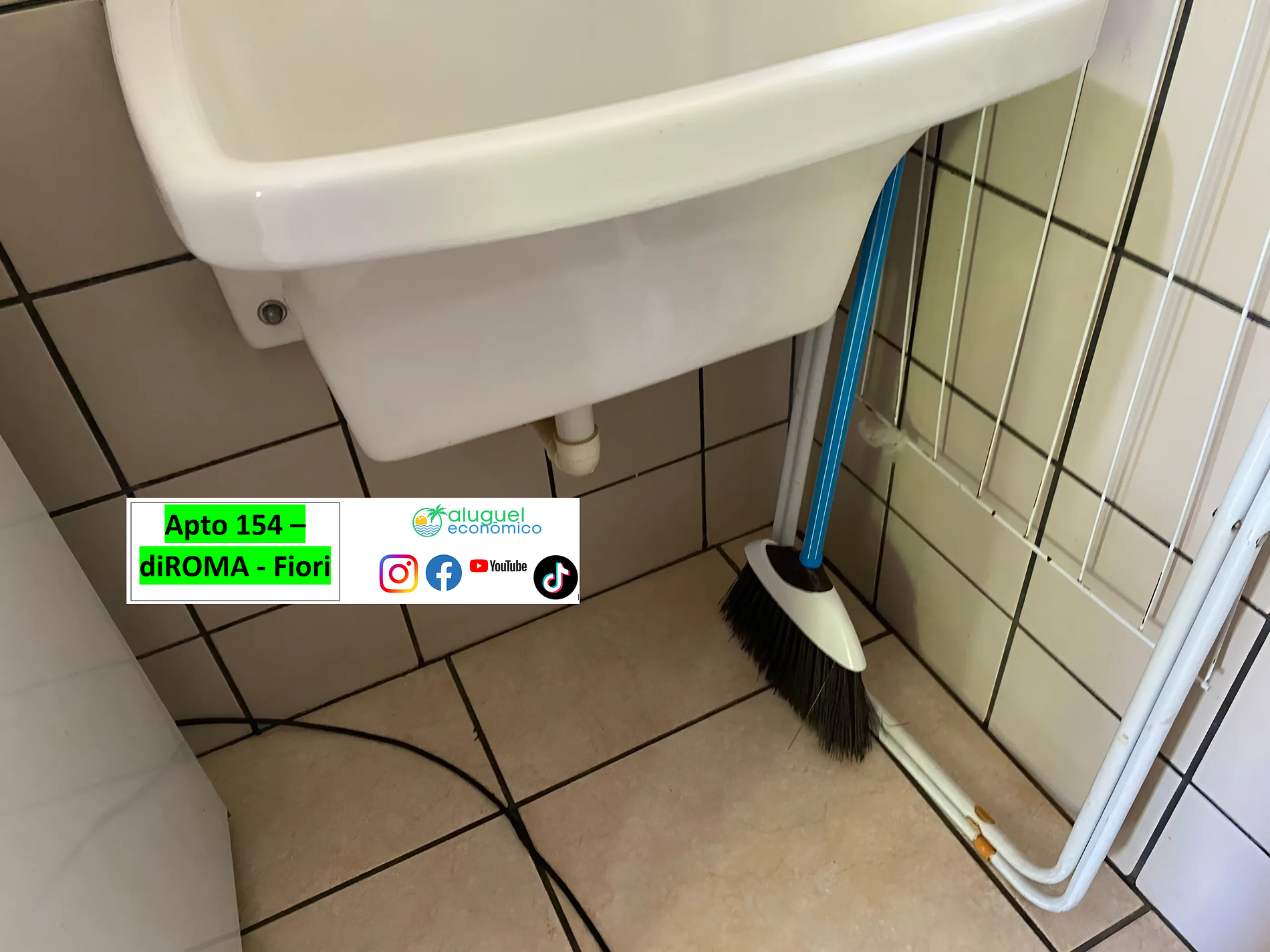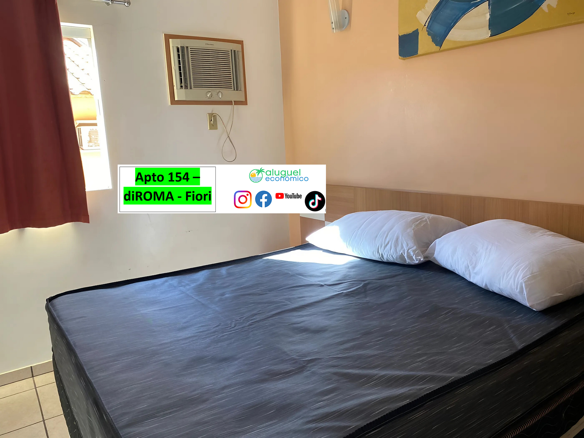 O apartamento 154 fica no segundo andar, é de 1 quarto , com cama de casal, ar condicionado, ventilador de teto, armário, criados-mudo e TV, banheiro com box blindex, sala com um sofá. cama com uma bicama, bancada com duas banquetas, ventilador, televisão de 20’ que pode ser assistida no quarto ou na sala, cozinha com geladeira, fogão, micro-ondas e armários com utensílios de cozinha, na área de serviço há tanque e pequeno varal.