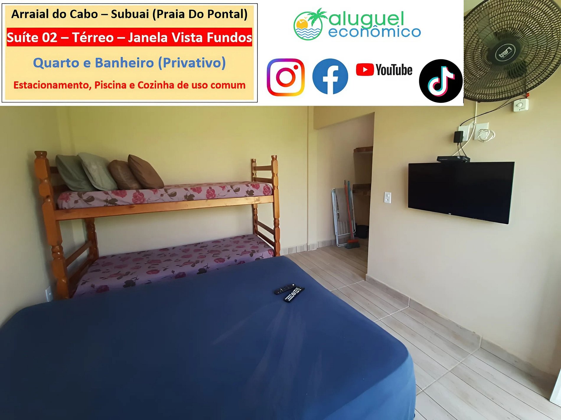Dirección del alojamiento: RJ-140 - Praia do Pontal, Arraial do Cabo - RJ (Subuai Village Arraial do Cabo) Para obtener más información sobre esta propiedad, acceda al siguiente enlace: https://www.alugueleconomico.com.br/pt/ Siga los datos de contacto para obtener más información sobre hosting: Margarete: 21 96754-7506 (Entrega de llaves) María: 21 98107-1377 Carlos Eduardo: 21 98099-1377 Nuestro correo electrónico es el siguiente: atendimento@alugueleconomico.com.br Síguenos en nuestras redes sociales: Página de Facebook: https://www.facebook.com/alugueleconomicooficial Nuestro grupo de Facebook (Aluguel Económico): https://www.facebook.com/groups/184418835538966 Nuestra página de Instagram: https://www.instagram.com/alugueleconomico_pessoa/ Perfil personal en Facebook: https://www.facebook.com/carloseduardobarros.leite.77 Página de TikTok: https://www.tiktok.com/@alugueleconomico_oficial