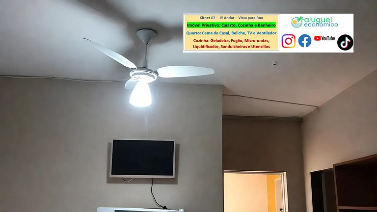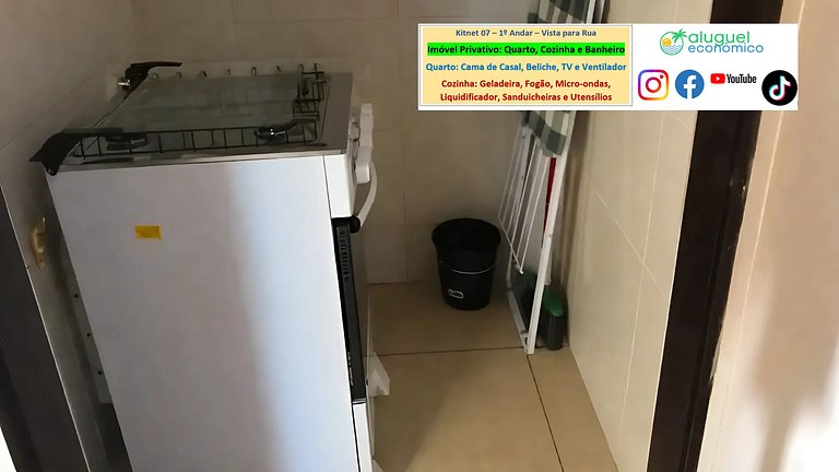 Kitnet privado con dormitorio, cocina y baño. En el dormitorio hay una cama doble, una litera, un televisor y un ventilador. Cocina con refrigerador, estufa, microondas, sandwichera, licuadora, utensilios de cocina. Baño con ducha y ducha eléctrica. Hay Wi-Fi. El edificio está detrás de la comisaría, por lo que es un lugar seguro para dejar tu vehículo en la calle. La vivienda se encuentra en una primera planta, debiendo subir escaleras. Ventana que da a la calle. Canastilla no incluida.