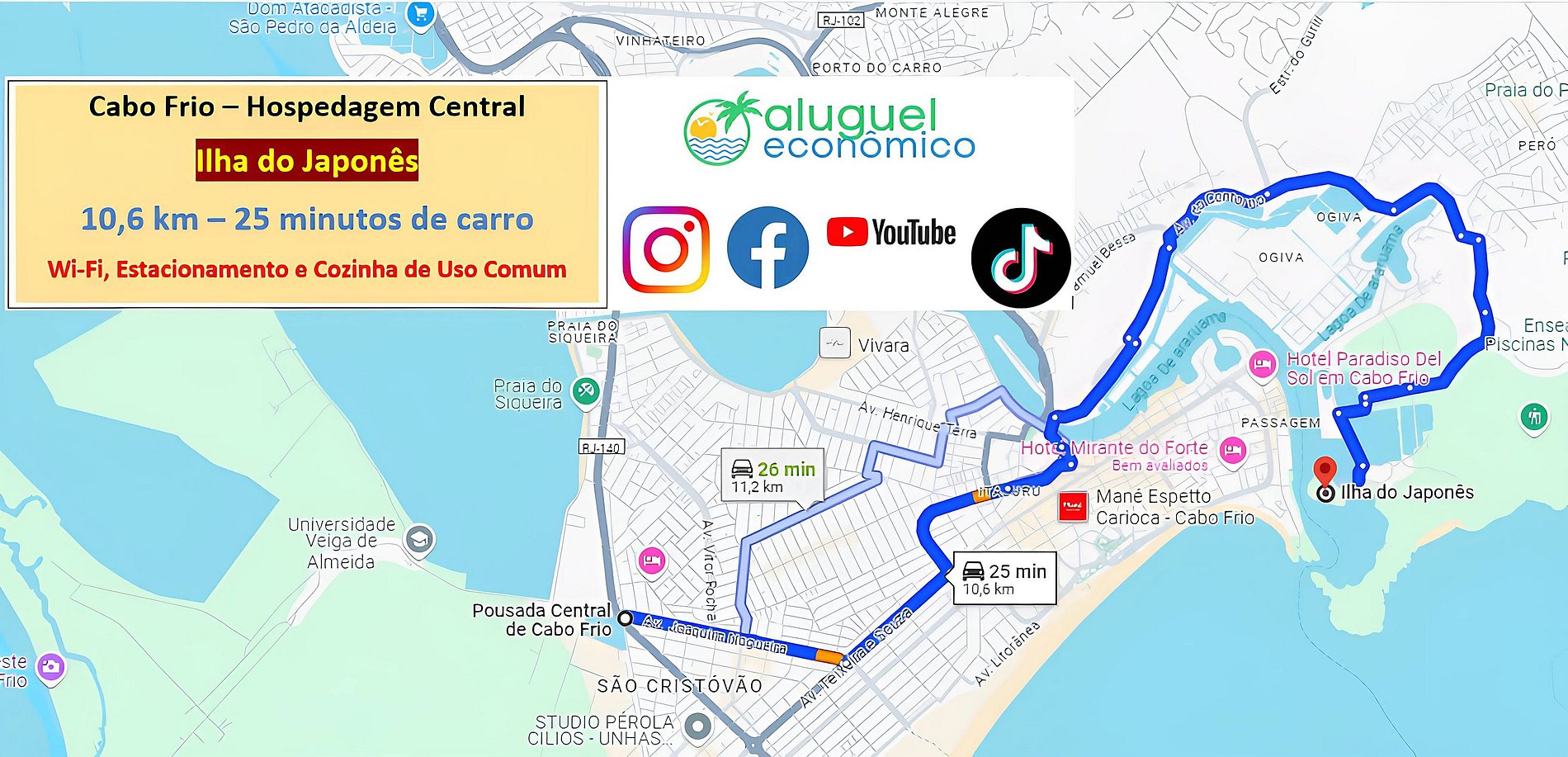 Dirección del Alojamiento: Av. Joaquim Nogueira, 1471 - São Cristóvão, Cabo Frio - RJ (Alojamiento Central)