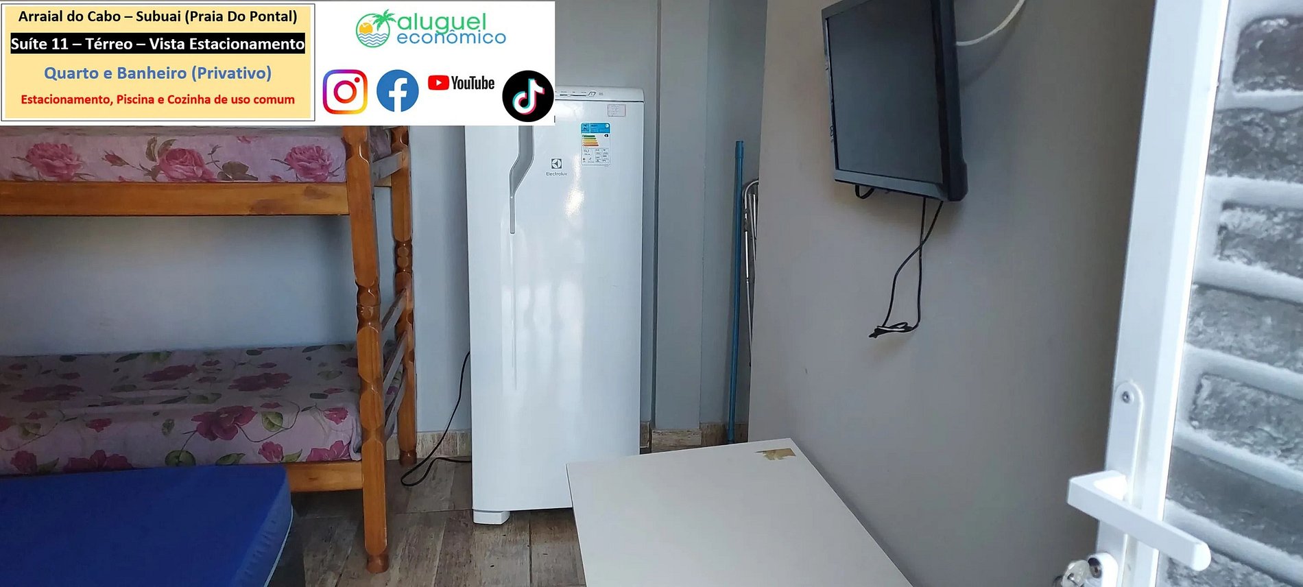 Dirección del alojamiento: RJ-140 - Praia do Pontal, Arraial do Cabo - RJ (Subuai Village Arraial do Cabo) Para obtener más información sobre esta propiedad, acceda al siguiente enlace: https://www.alugueleconomico.com.br/pt/ Siga los datos de contacto para obtener más información sobre hosting: Margarete: 21 96754-7506 (Entrega de llaves) María: 21 98107-1377 Carlos Eduardo: 21 98099-1377 Nuestro correo electrónico es el siguiente: atendimento@alugueleconomico.com.br Síguenos en nuestras redes sociales: Página de Facebook: https://www.facebook.com/alugueleconomicooficial Nuestro grupo de Facebook (Aluguel Económico): https://www.facebook.com/groups/184418835538966 Nuestra página de Instagram: https://www.instagram.com/alugueleconomico_pessoa/ Perfil personal en Facebook: https://www.facebook.com/carloseduardobarros.leite.77 Página de TikTok: https://www.tiktok.com/@alugueleconomico_oficial