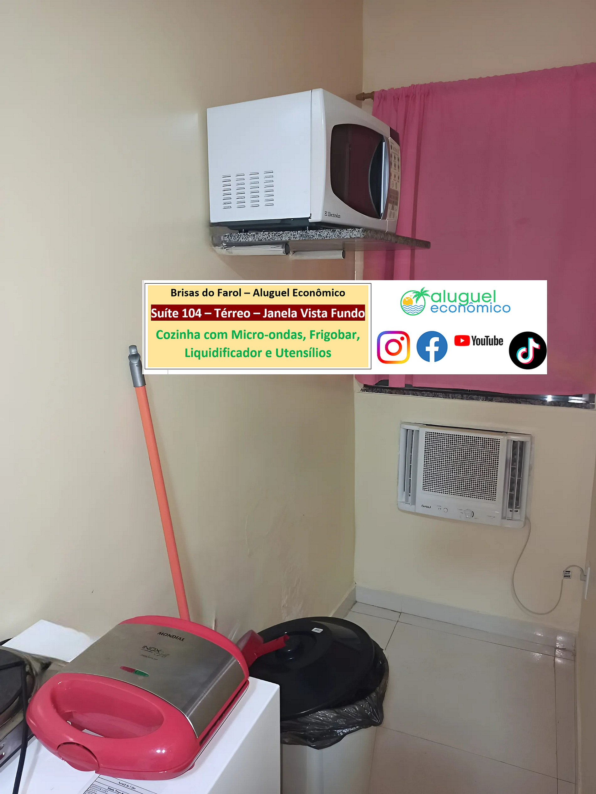 Suite privada (dormitorio y baño) en el centro de Arraial do Cabo y a 500 metros de Praia Grande. El dormitorio tiene TV, aire acondicionado, ventilador y cama de matrimonio. En la cocina hay nevera, microondas, placa eléctrica, batidora, sandwichera, ollas, platos, vasos y cubiertos. Hay conexión Wi-Fi. La propiedad está en la planta baja y tiene una ventana que da a la parte trasera. Se requiere identificación personal de los huéspedes. El alojamiento barato es con Aluguel Econômico.