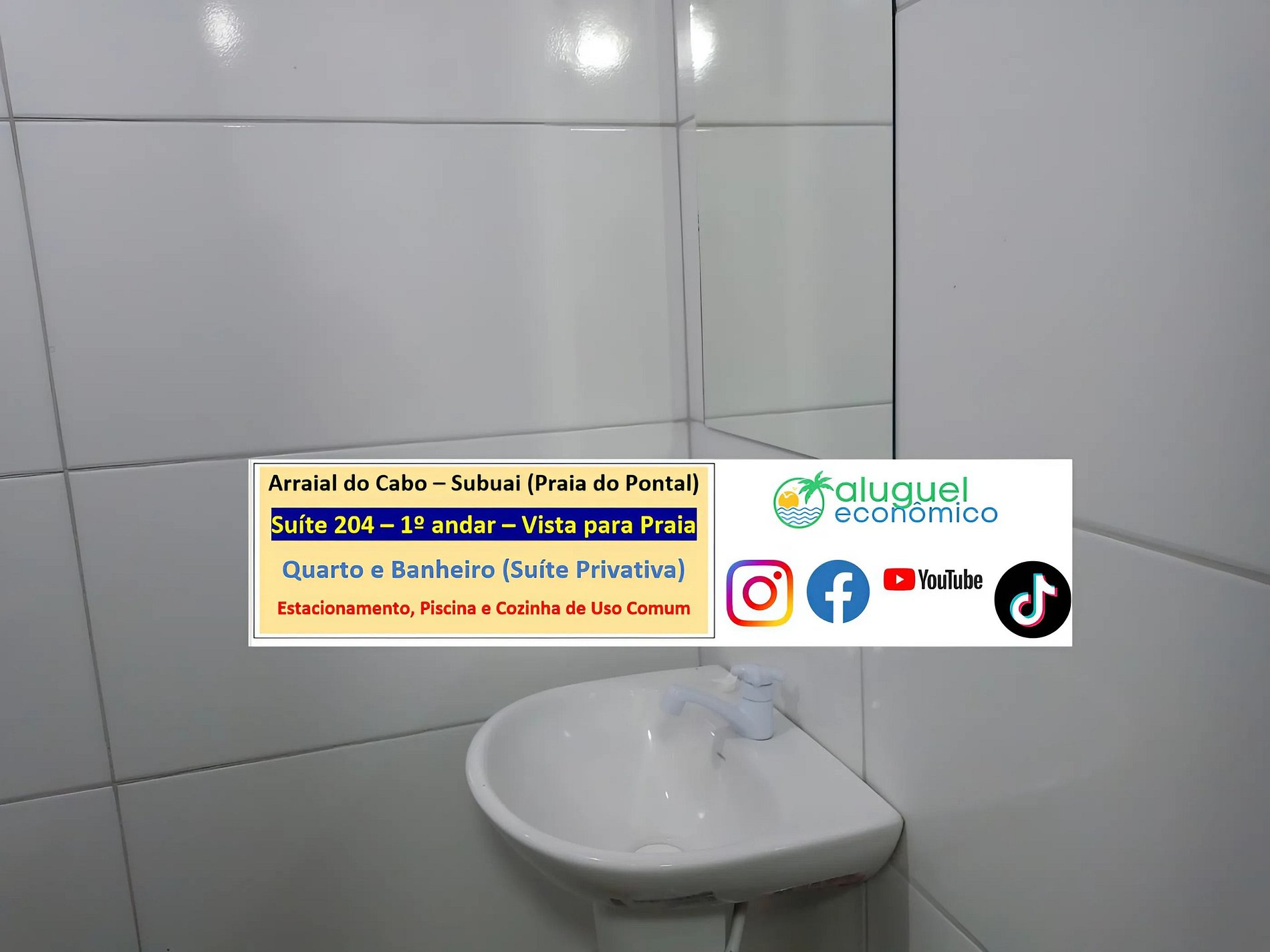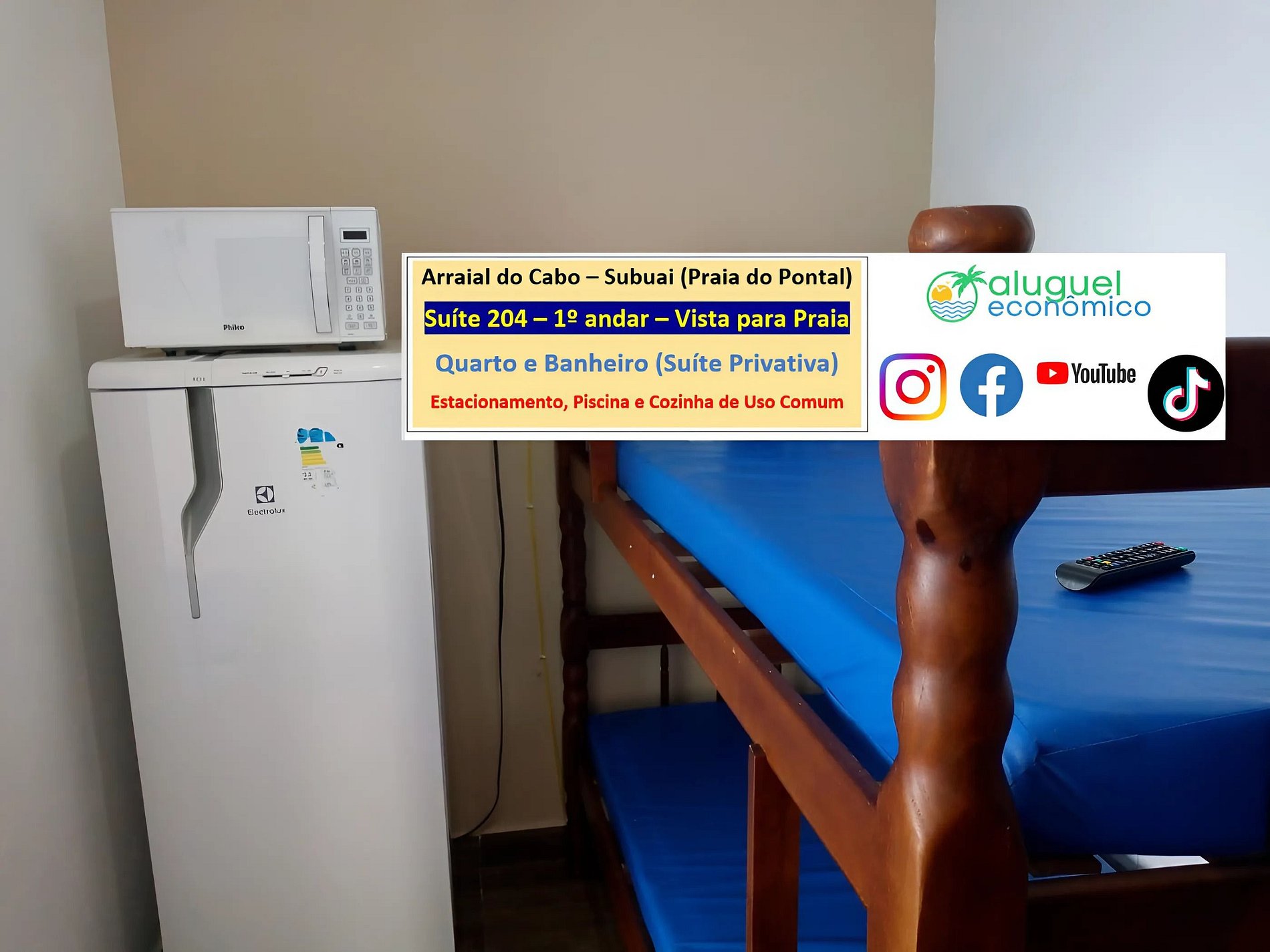 Dirección del alojamiento: RJ-140 - Praia do Pontal, Arraial do Cabo - RJ (Subuai Village Arraial do Cabo) Para obtener más información sobre esta propiedad, acceda al siguiente enlace: https://www.alugueleconomico.com.br/pt/ Siga los datos de contacto para obtener más información sobre hosting: Margarete: 21 96754-7506 (Entrega de llaves) María: 21 98107-1377 Carlos Eduardo: 21 98099-1377 Nuestro correo electrónico es el siguiente: atendimento@alugueleconomico.com.br Síguenos en nuestras redes sociales: Página de Facebook: https://www.facebook.com/alugueleconomicooficial Nuestro grupo de Facebook (Aluguel Económico): https://www.facebook.com/groups/184418835538966 Nuestra página de Instagram: https://www.instagram.com/alugueleconomico_pessoa/ Perfil personal en Facebook: https://www.facebook.com/carloseduardobarros.leite.77 Página de TikTok: https://www.tiktok.com/@alugueleconomico_oficial