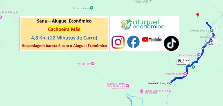 Cachoeira Mãe: 4,8 km (12 minutos de carro), mais caminhada até a cachoeira;