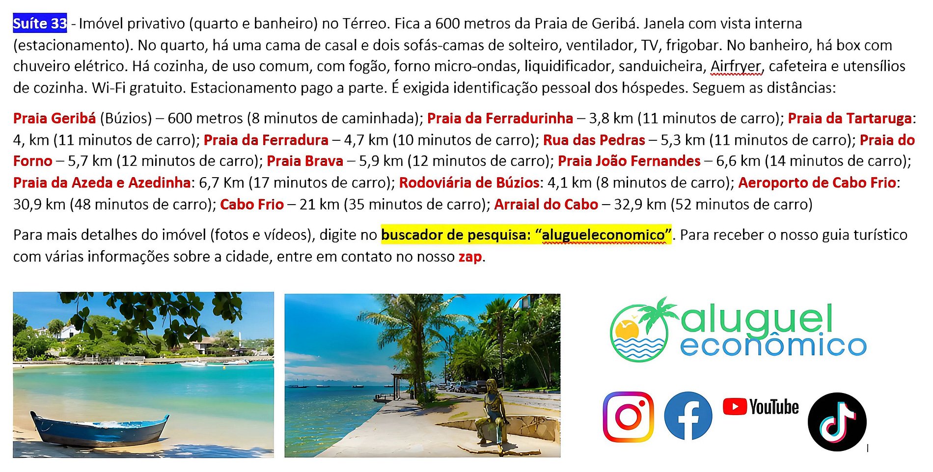 Geribá - Búzios - Suíte 33 - Aluguel Econômico
