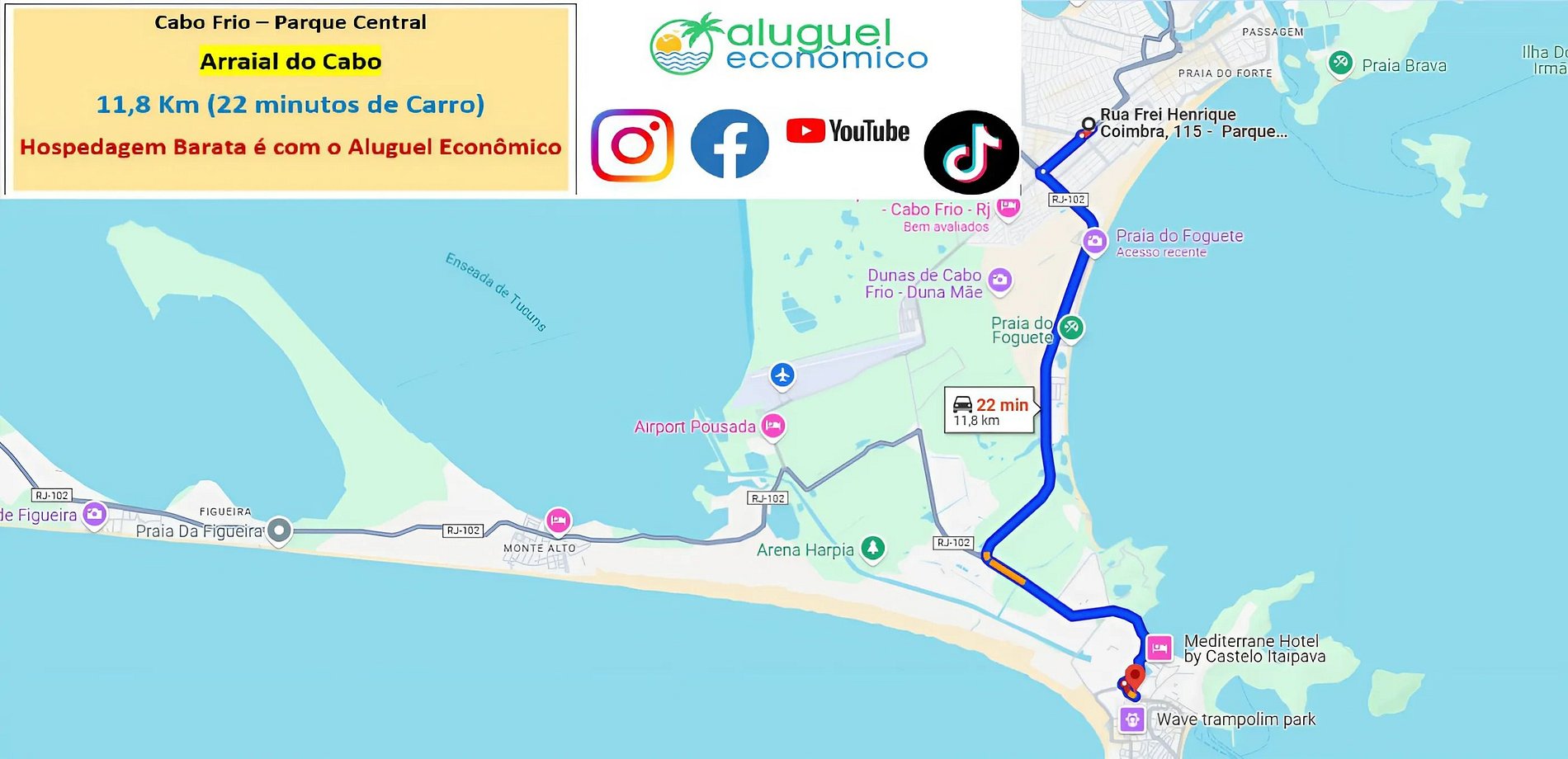 Aeroporto de Cabo Frio: 9,9 km (16 minutos de carro);