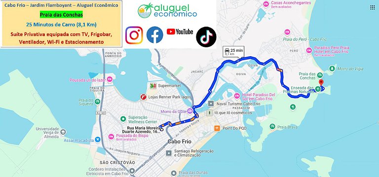 Localização: R. Maria Moreira Duarte Azevedo, 16 - Jardim Flamboyant – Cabo Frio – RJ (Fica próximo à rodoviária de Cabo Frio)