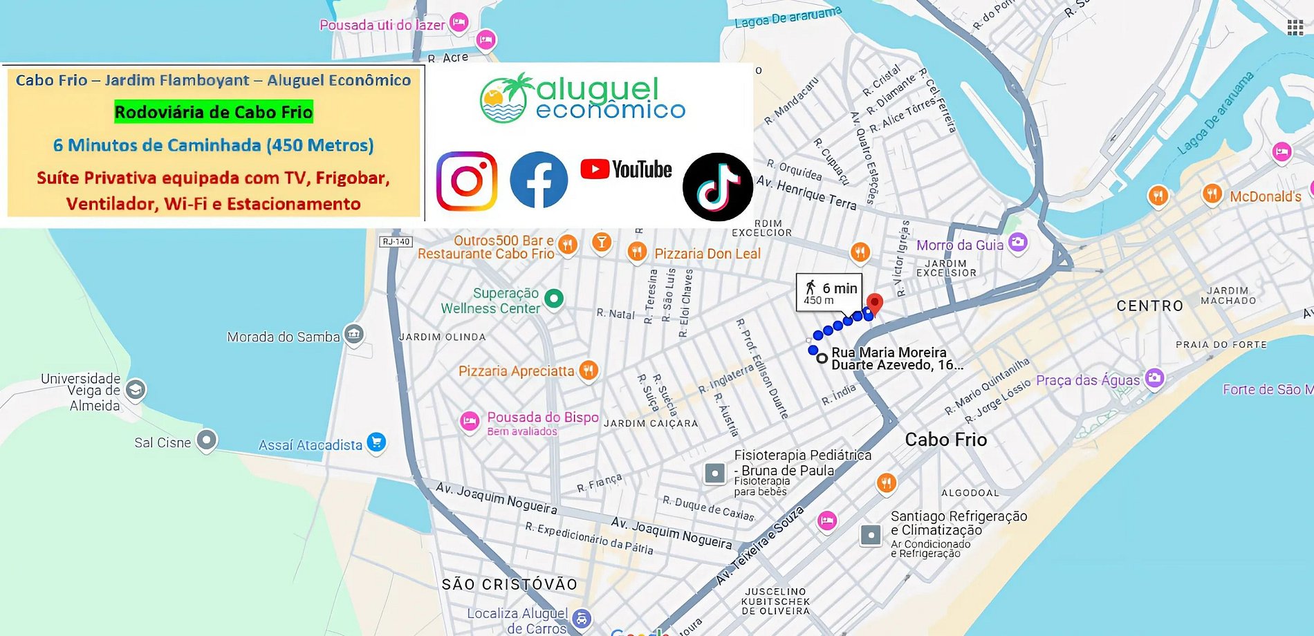 Localização: R. Maria Moreira Duarte Azevedo, 16 - Jardim Flamboyant – Cabo Frio – RJ (Fica próximo à rodoviária de Cabo Frio)