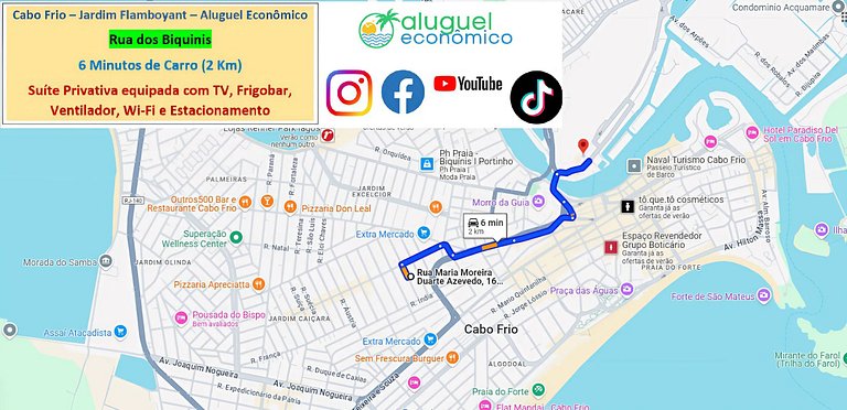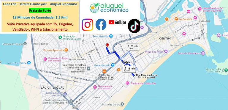 Centro de Cabo Frio: 2,2 KM (7 minutos de carro)