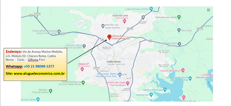 Endereço da hospedagem: Via de Acesso Marina Mofatto, s/n, Módulo 02, Chácara Roma, Caldas Novas - Goiás, CEP 75694-025