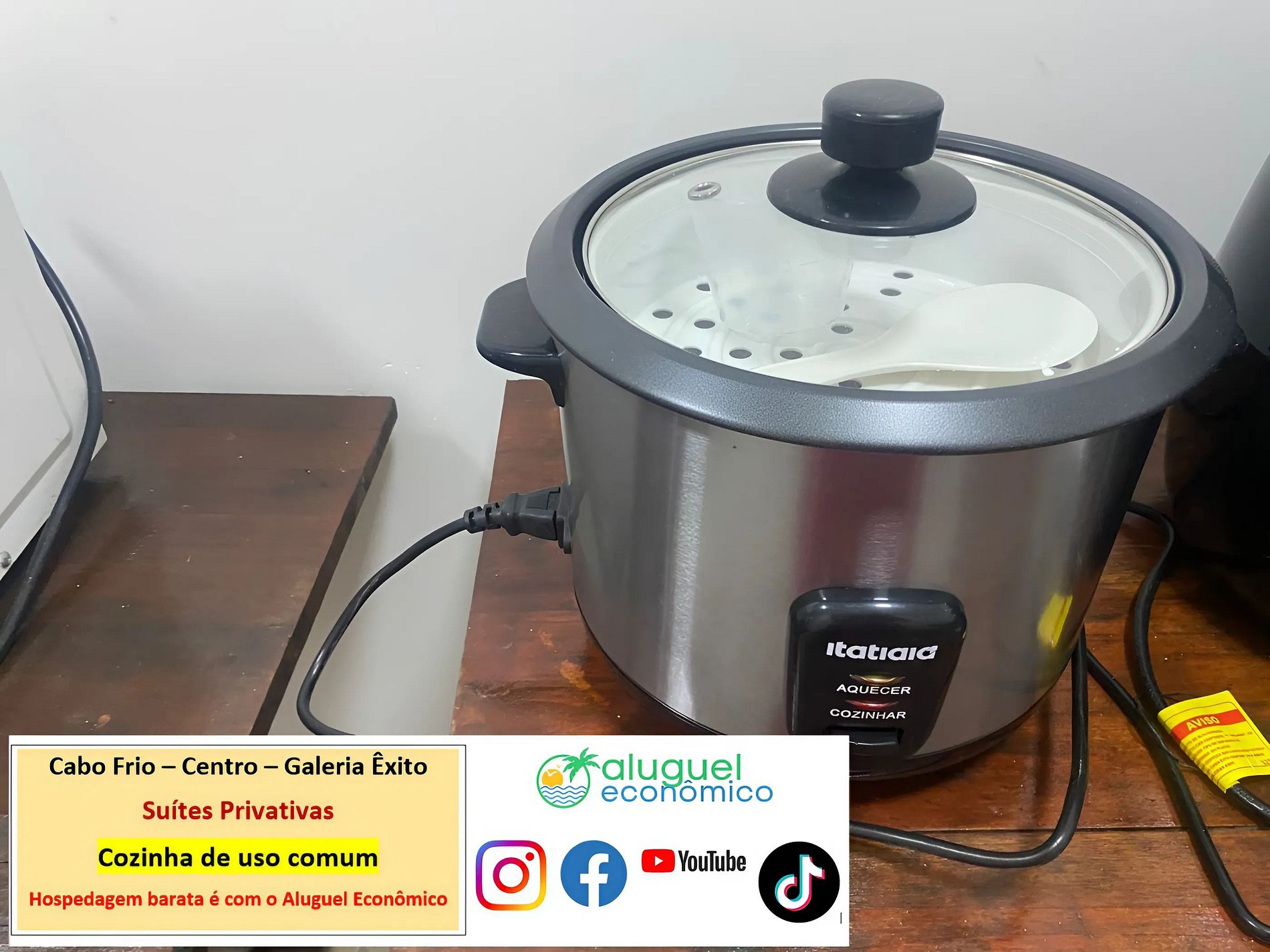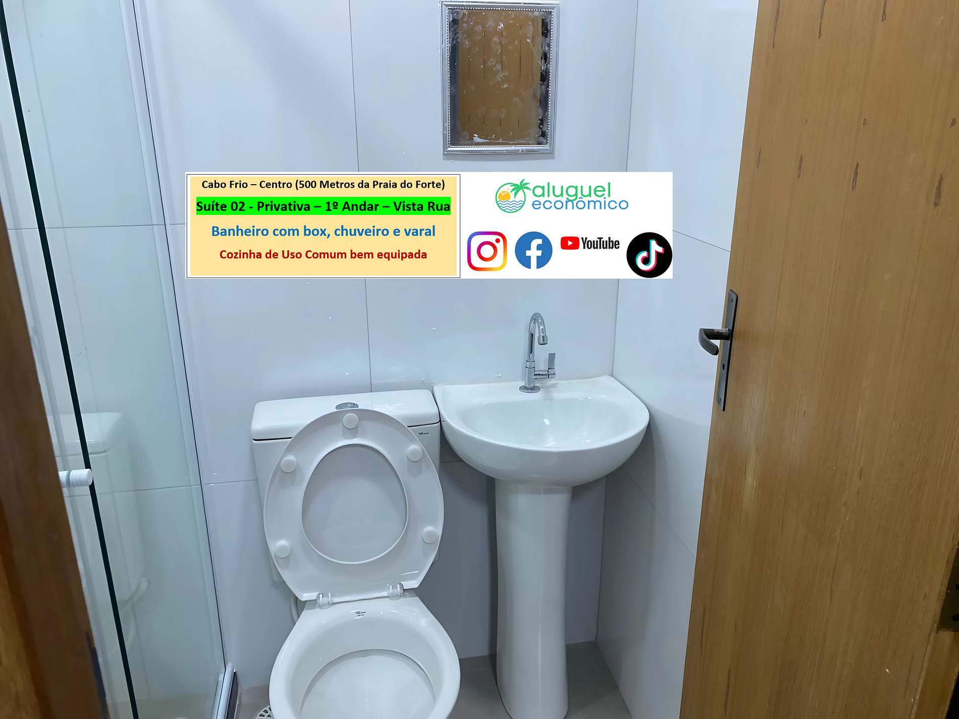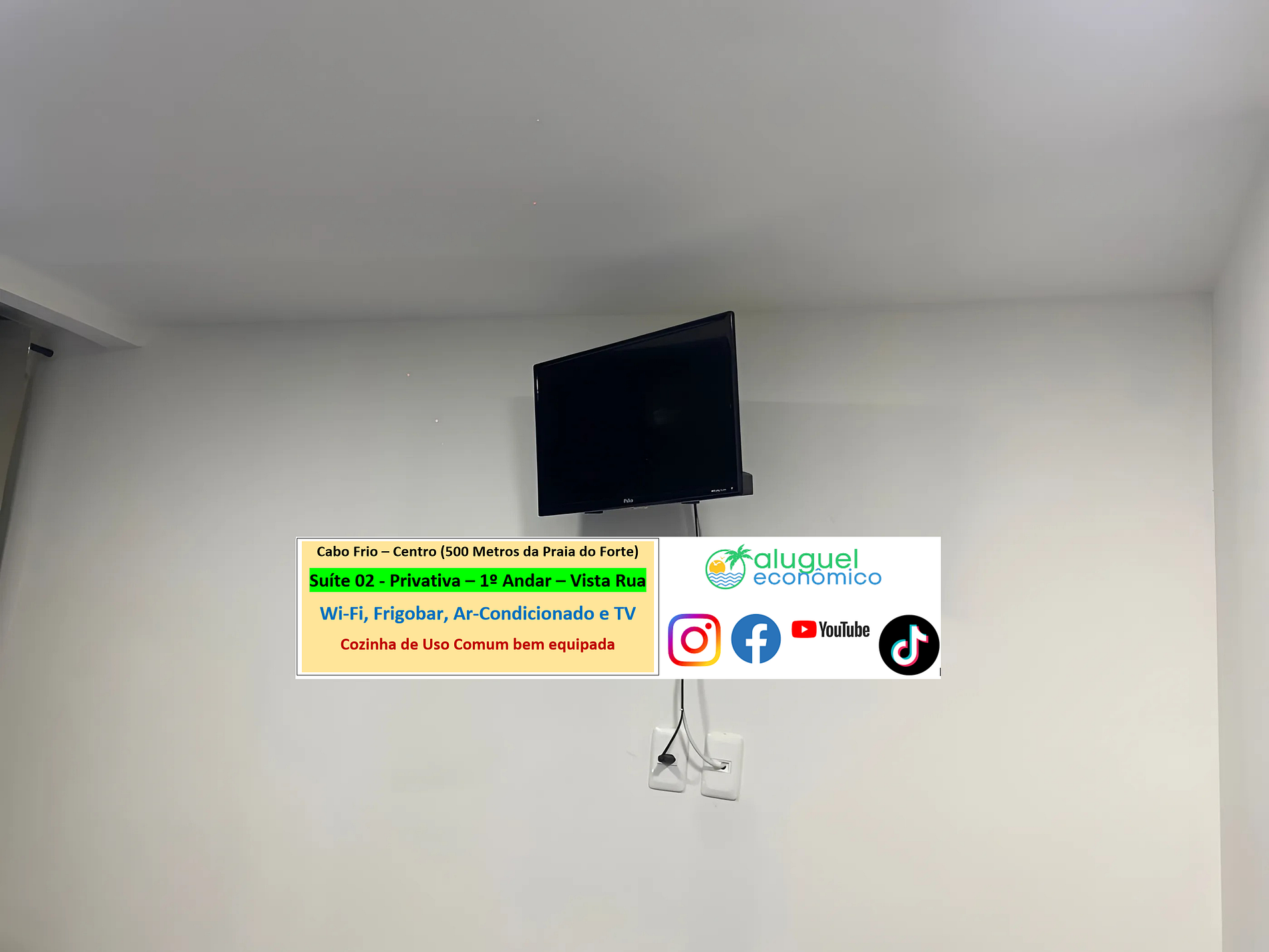 Suíte privativa (quarto e banheiro) no Centro de Cabo Frio, a 550 metros da Praia do Forte. O quarto é equipado com televisão, ar-condicionado, ventilador, frigobar, cama de casal, cama de solteiro, pratos, copos, garrafa térmica e talheres. Na cozinha (de uso comum) tem forno micro-ondas, air fryer, forno elétrico, liquidificador e sanduicheira. Há Wi-Fi. O imóvel fica no primeiro, tendo que subir escada. Tem janela com vista para a rua. Não Há estacionamento. É exigida identificação pessoal.