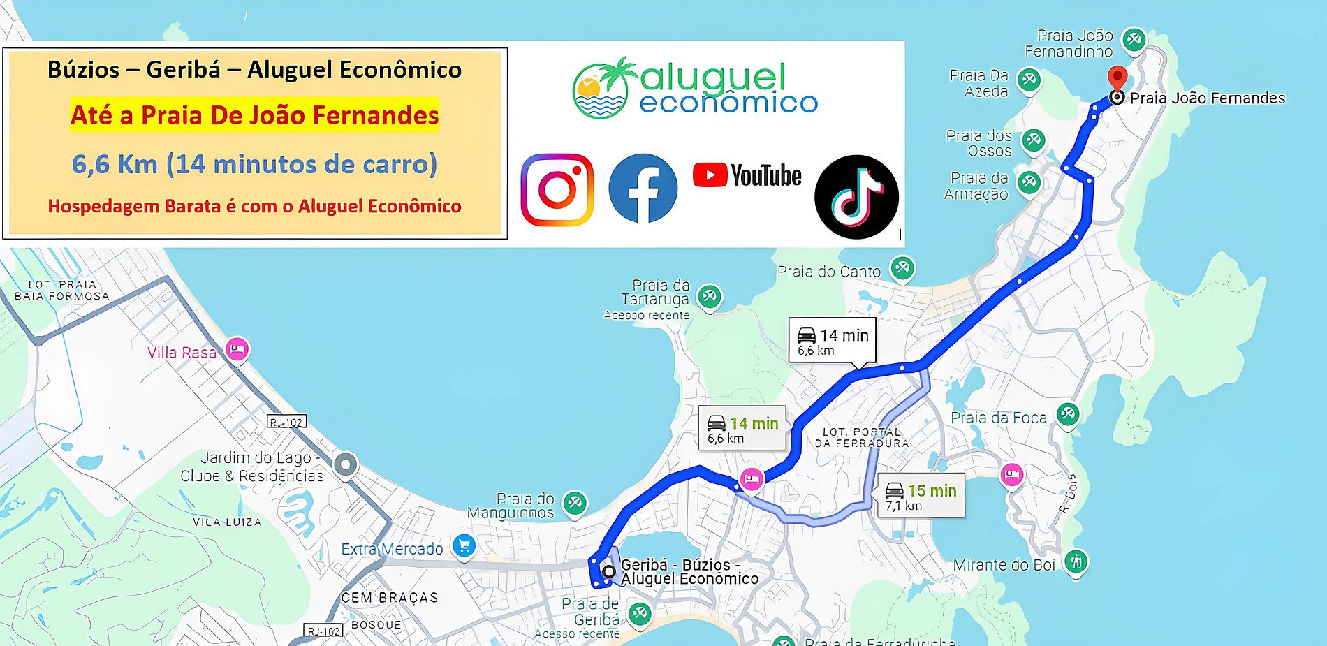 Praia de João Fernandes e João Fernandinho: 7 km (15 minutos de carro)