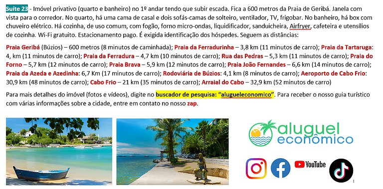 Geribá - Búzios - Suíte 23 - Aluguel Econômico