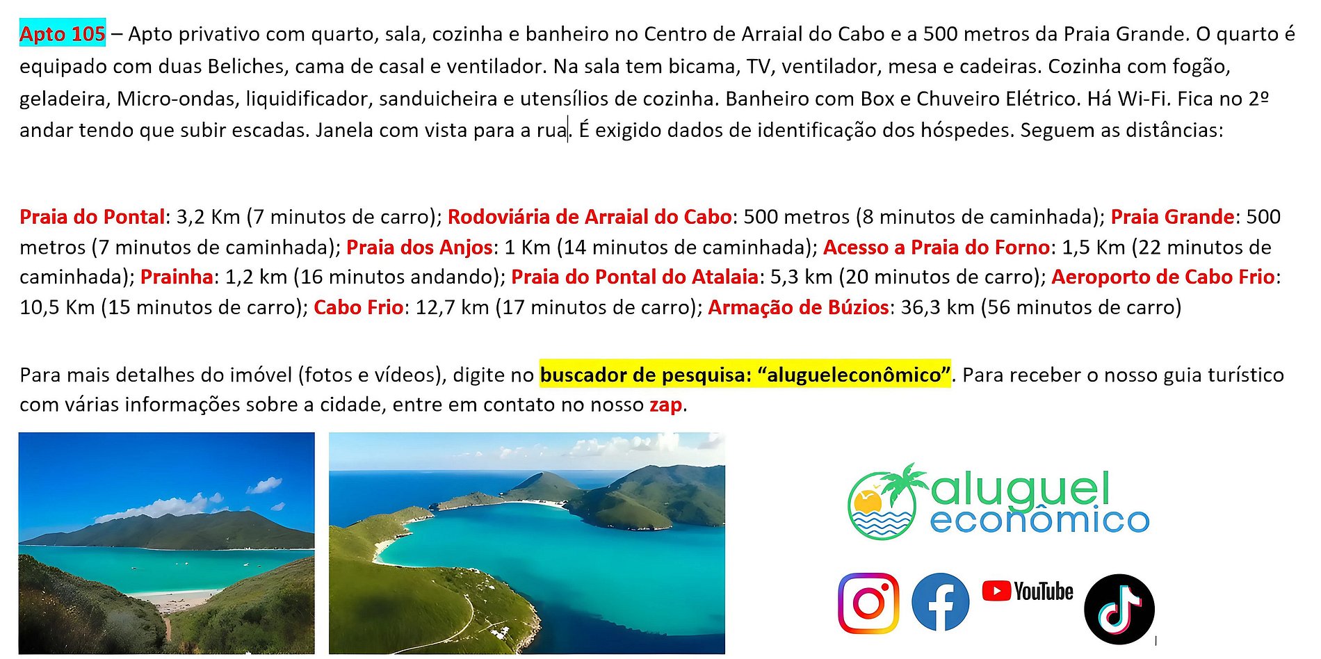 Nossa página no Instagram: https://www.instagram.com/alugueleconomico_temporada/